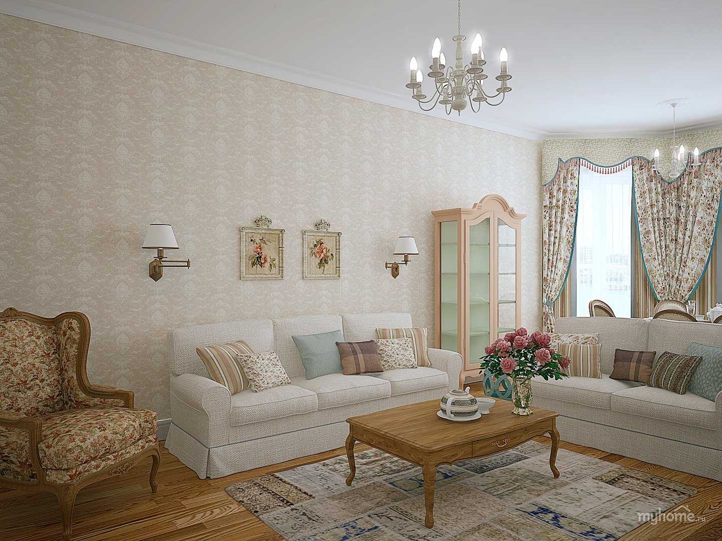 Гостиная в бежевом цвете в стиле Прованс