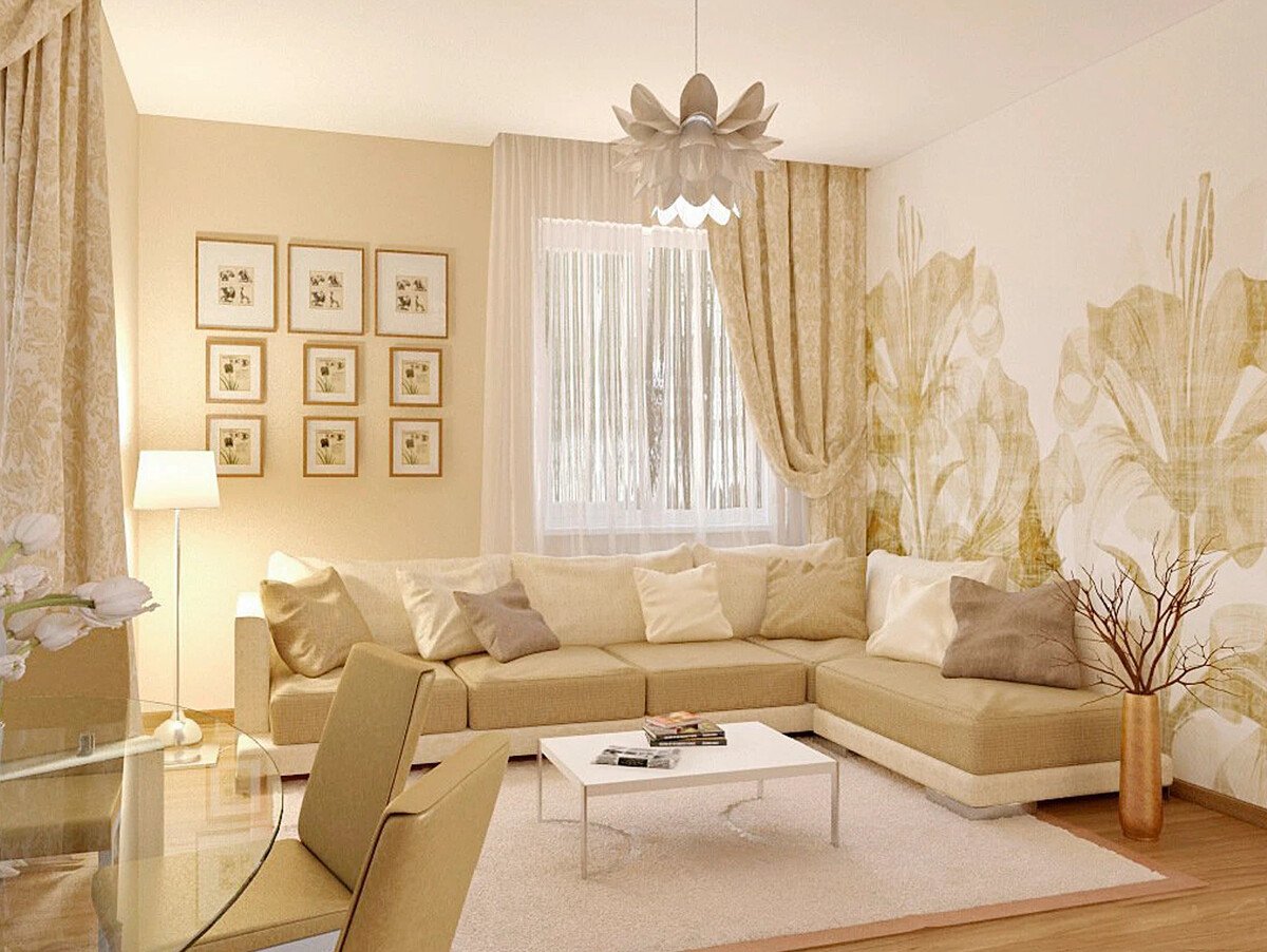 Гостиная в бежевых тонах