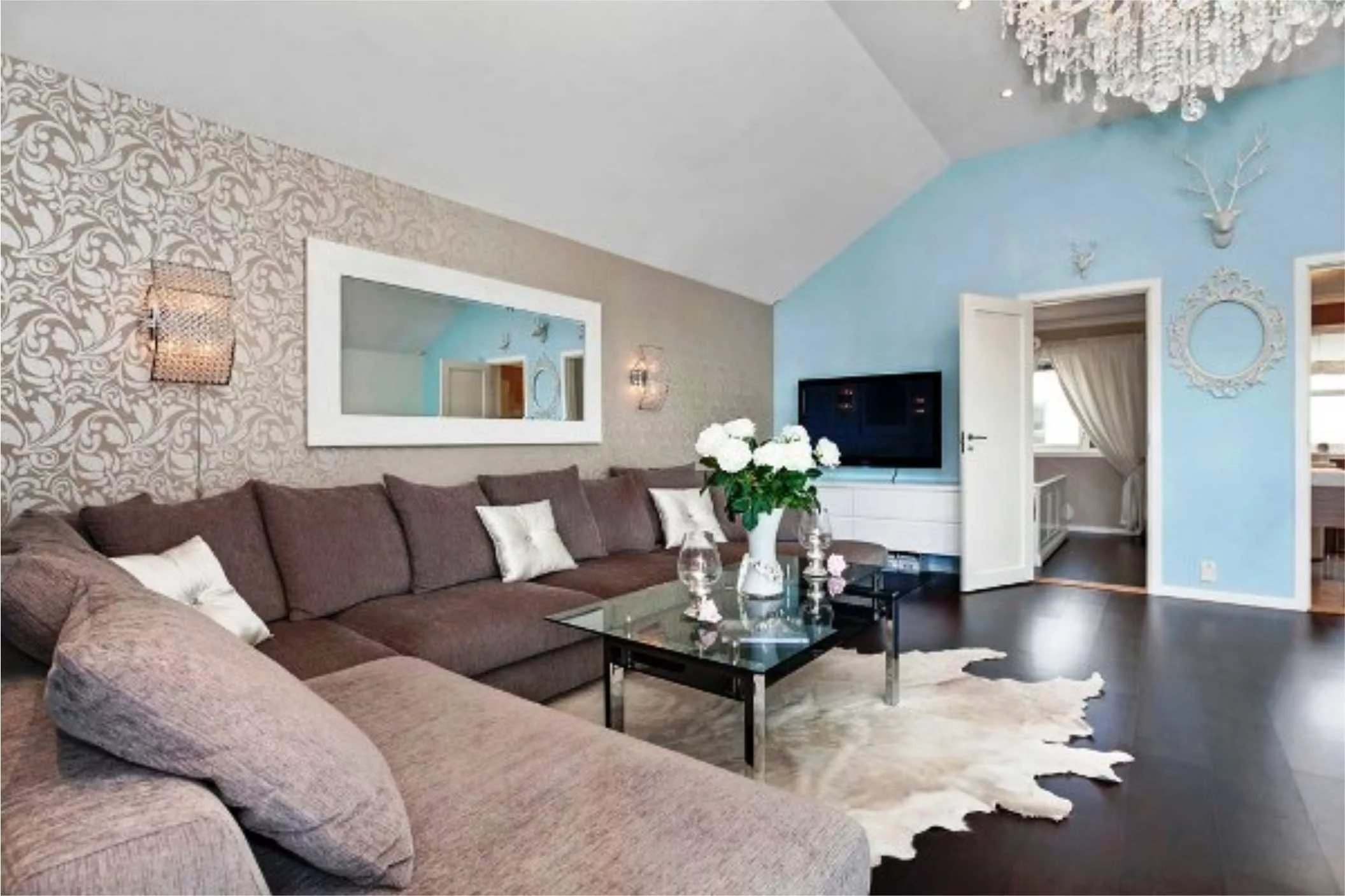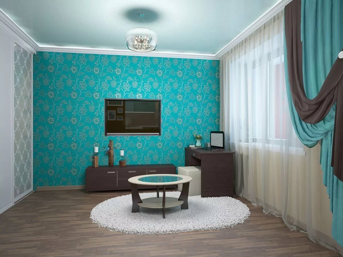 Гостиная в бирюзово шоколадных тонах