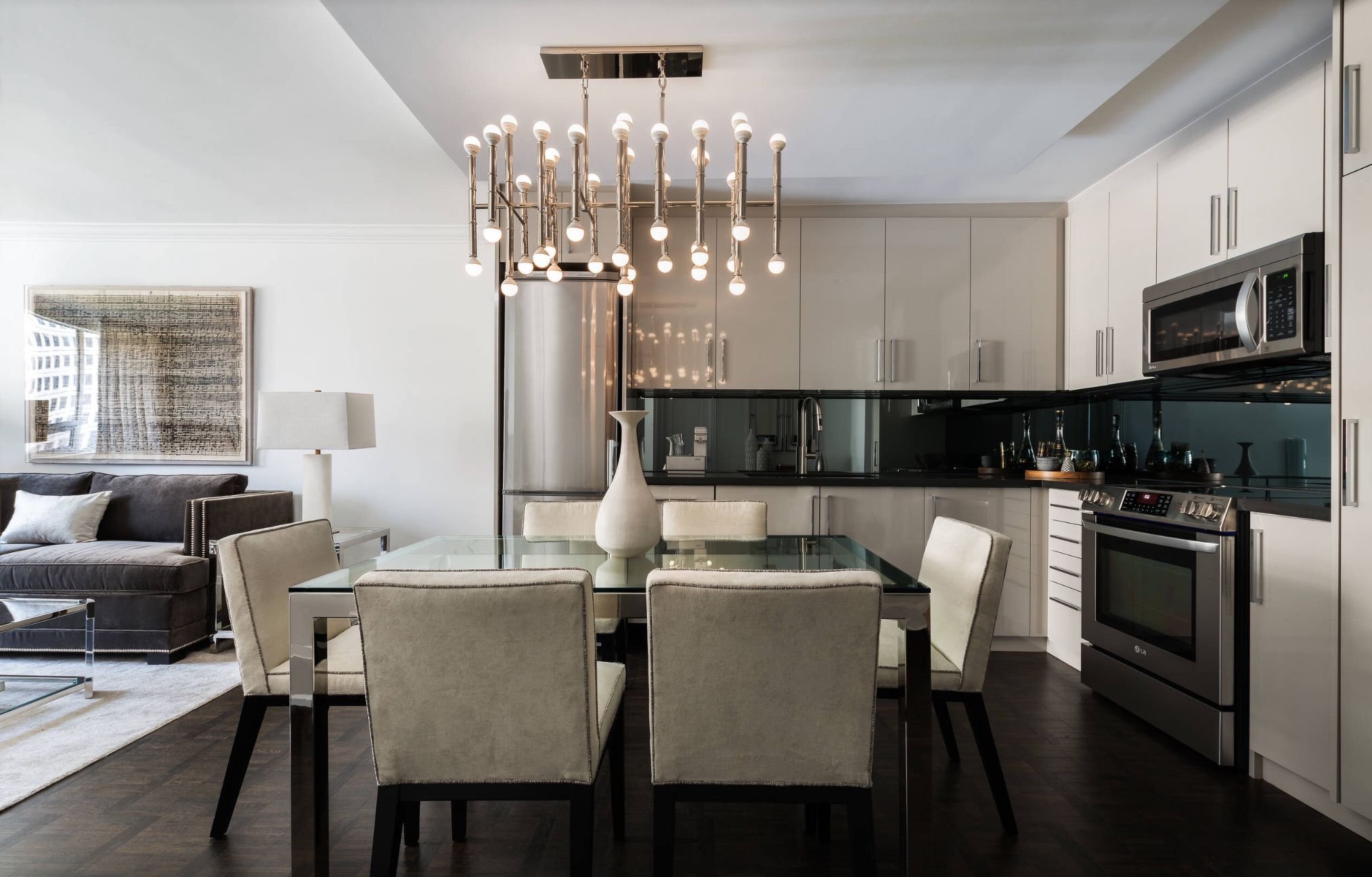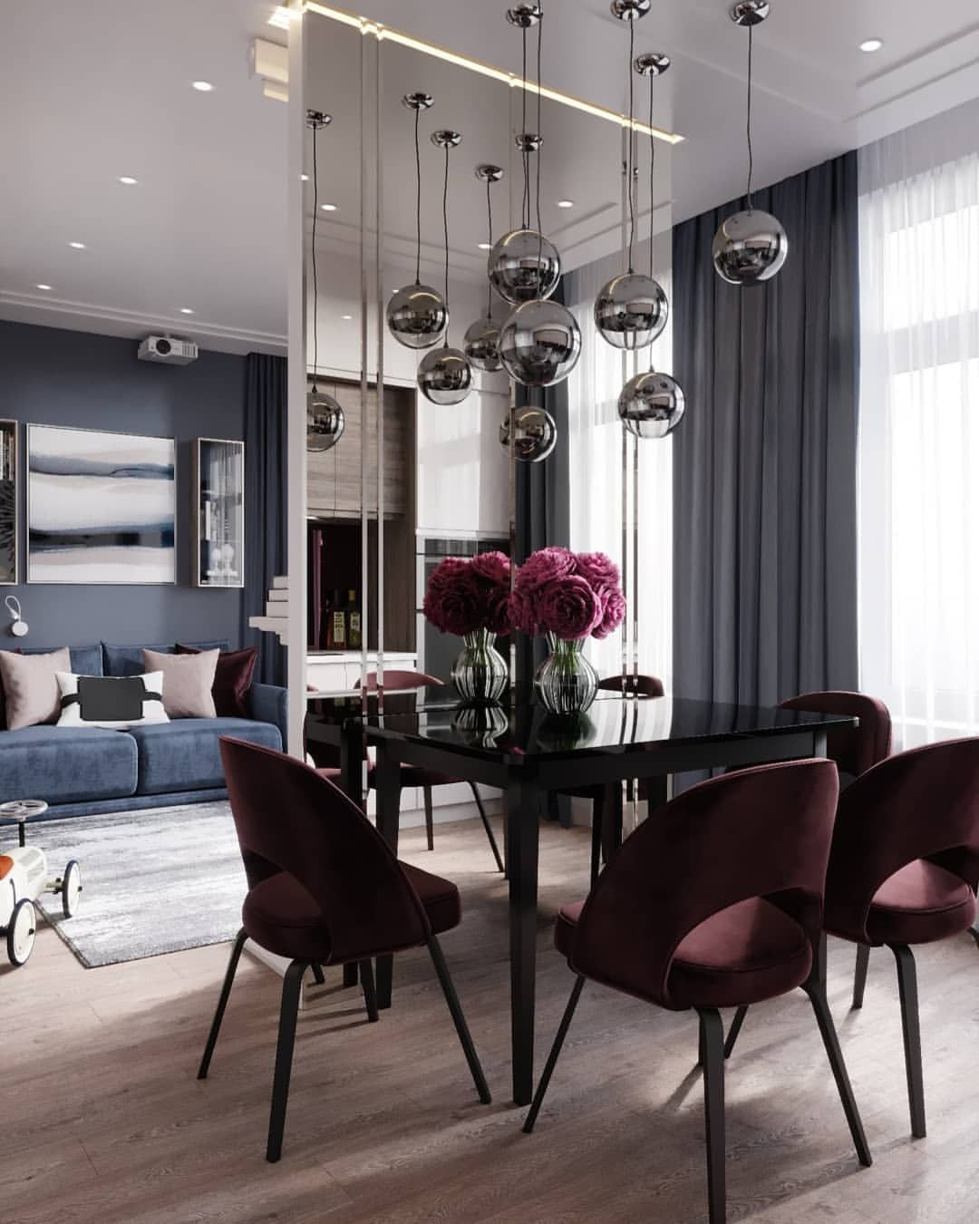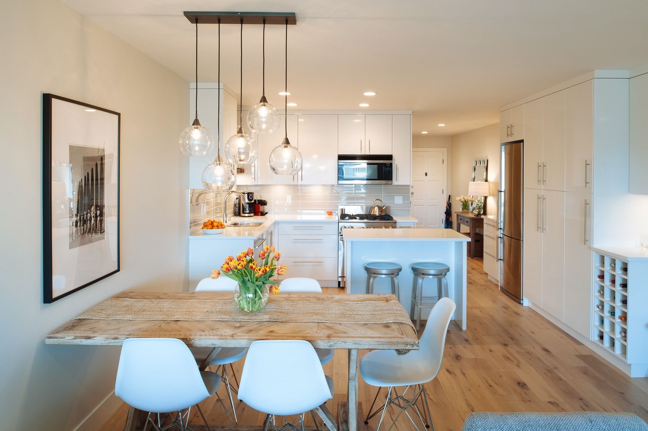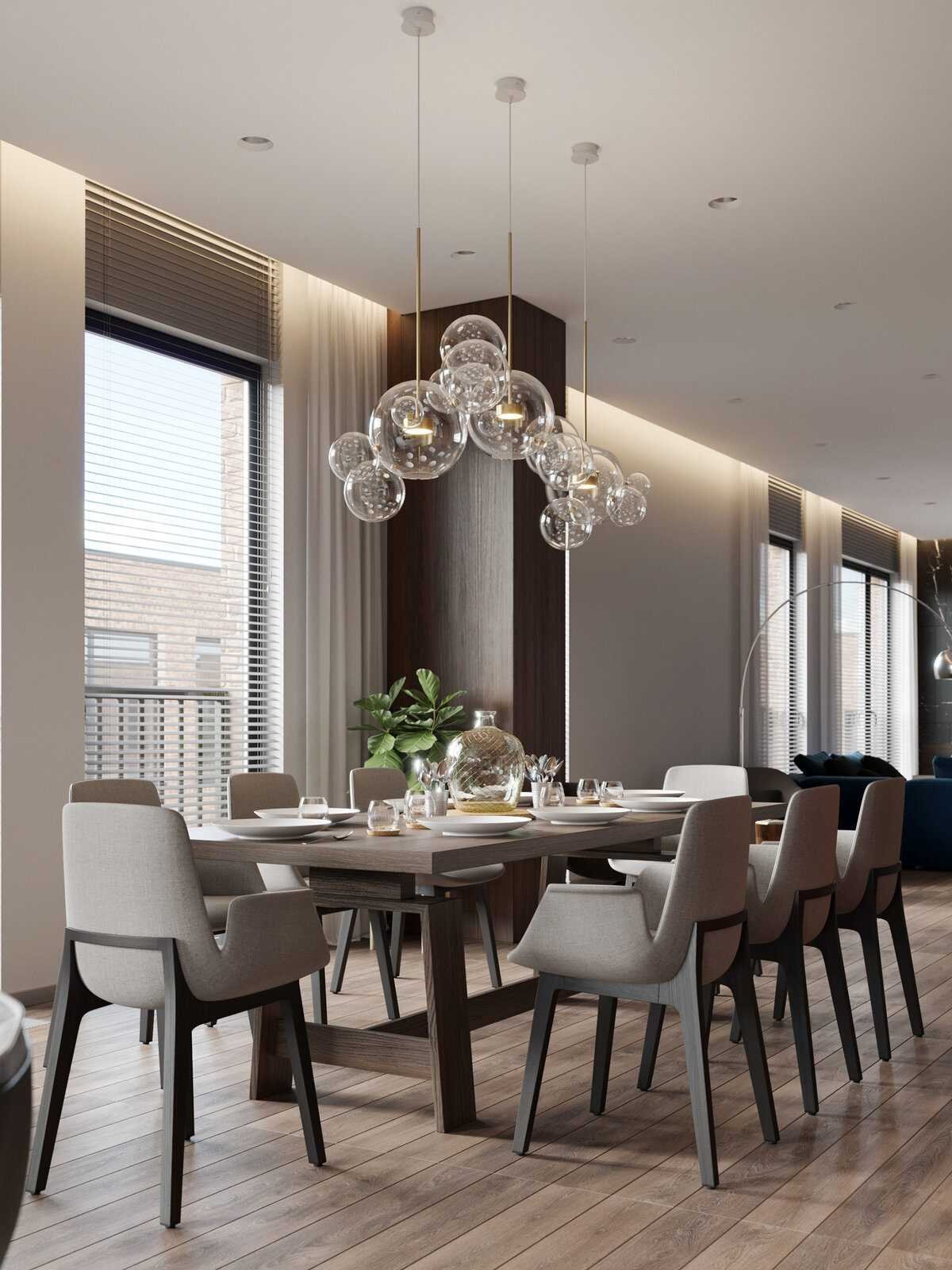 Люстры над обеденным столом в современном стиле
