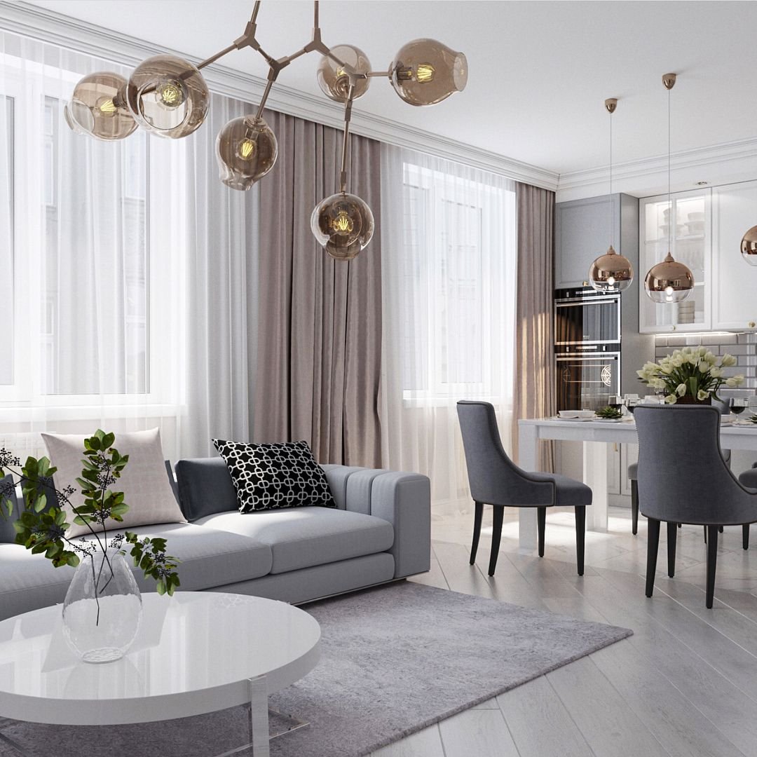 Кухня гостиная в светлых тонах