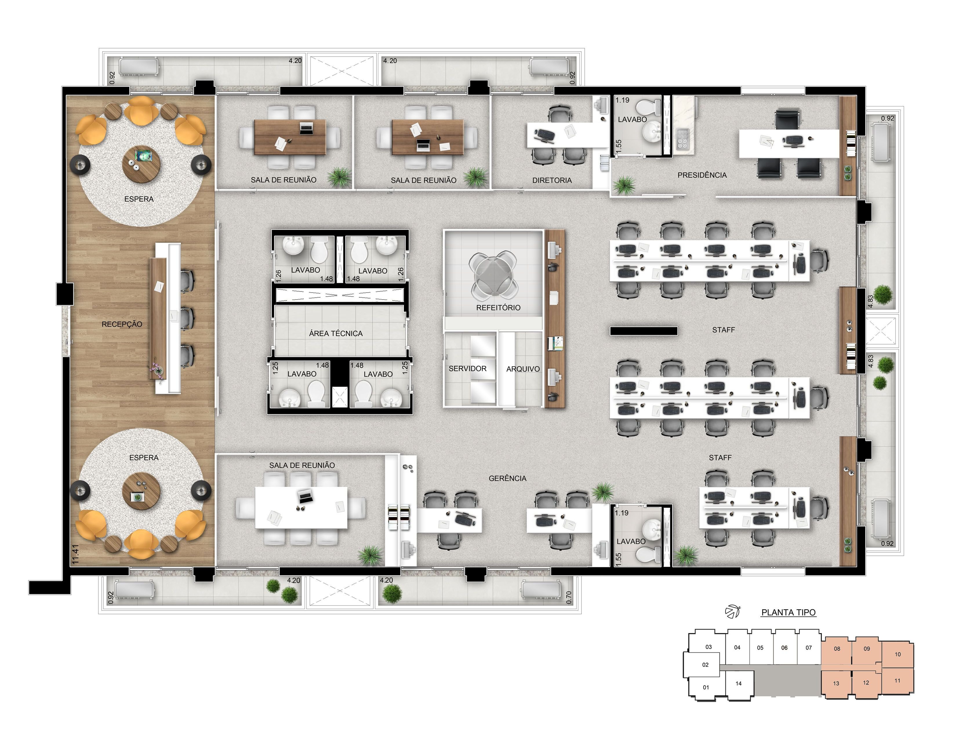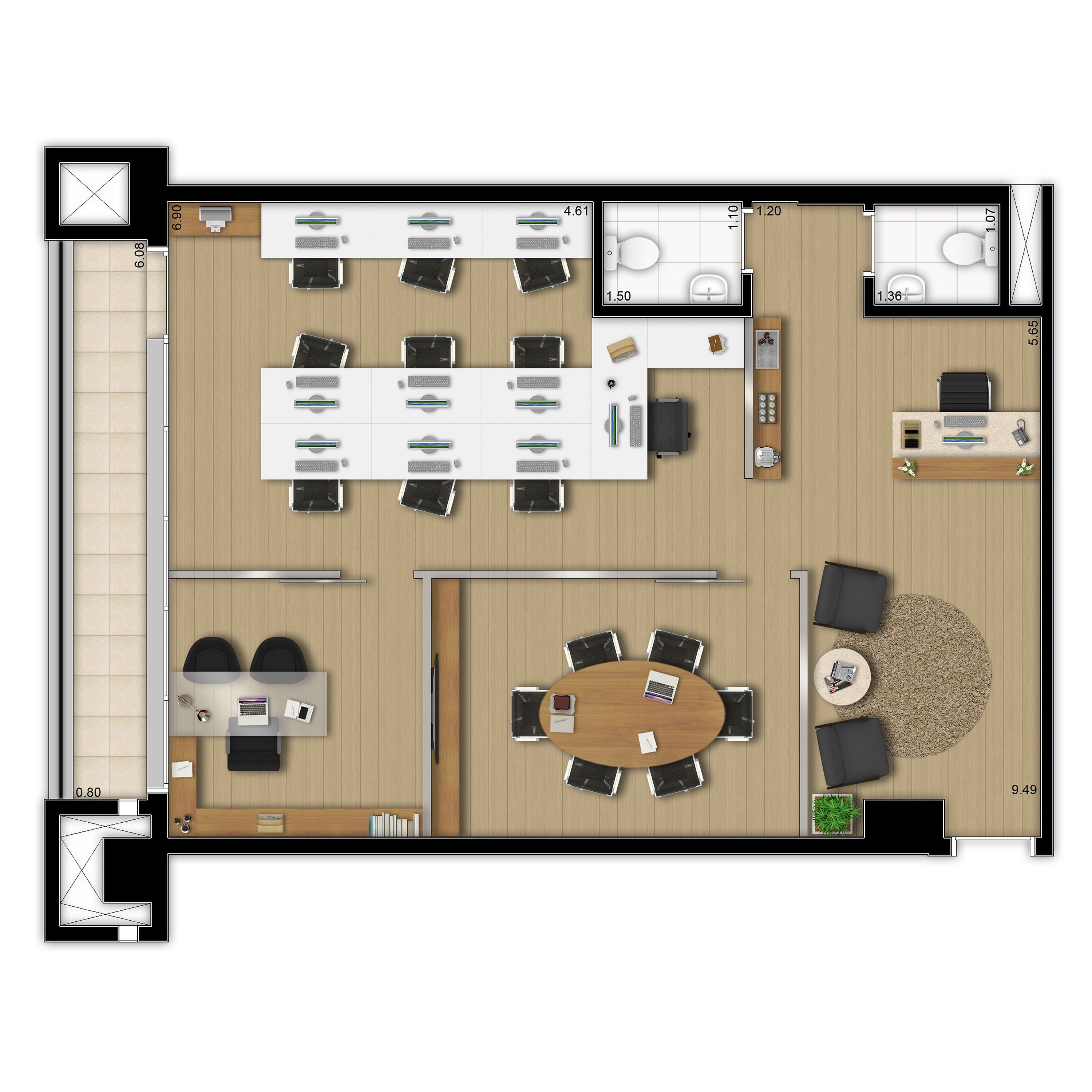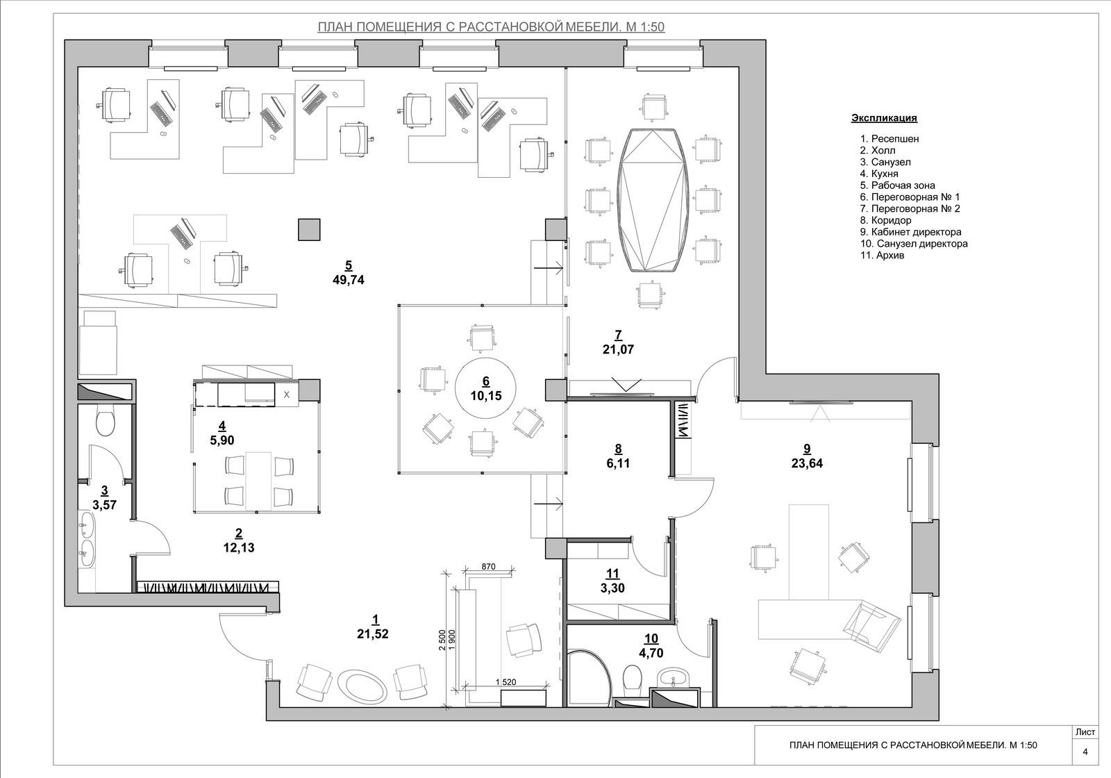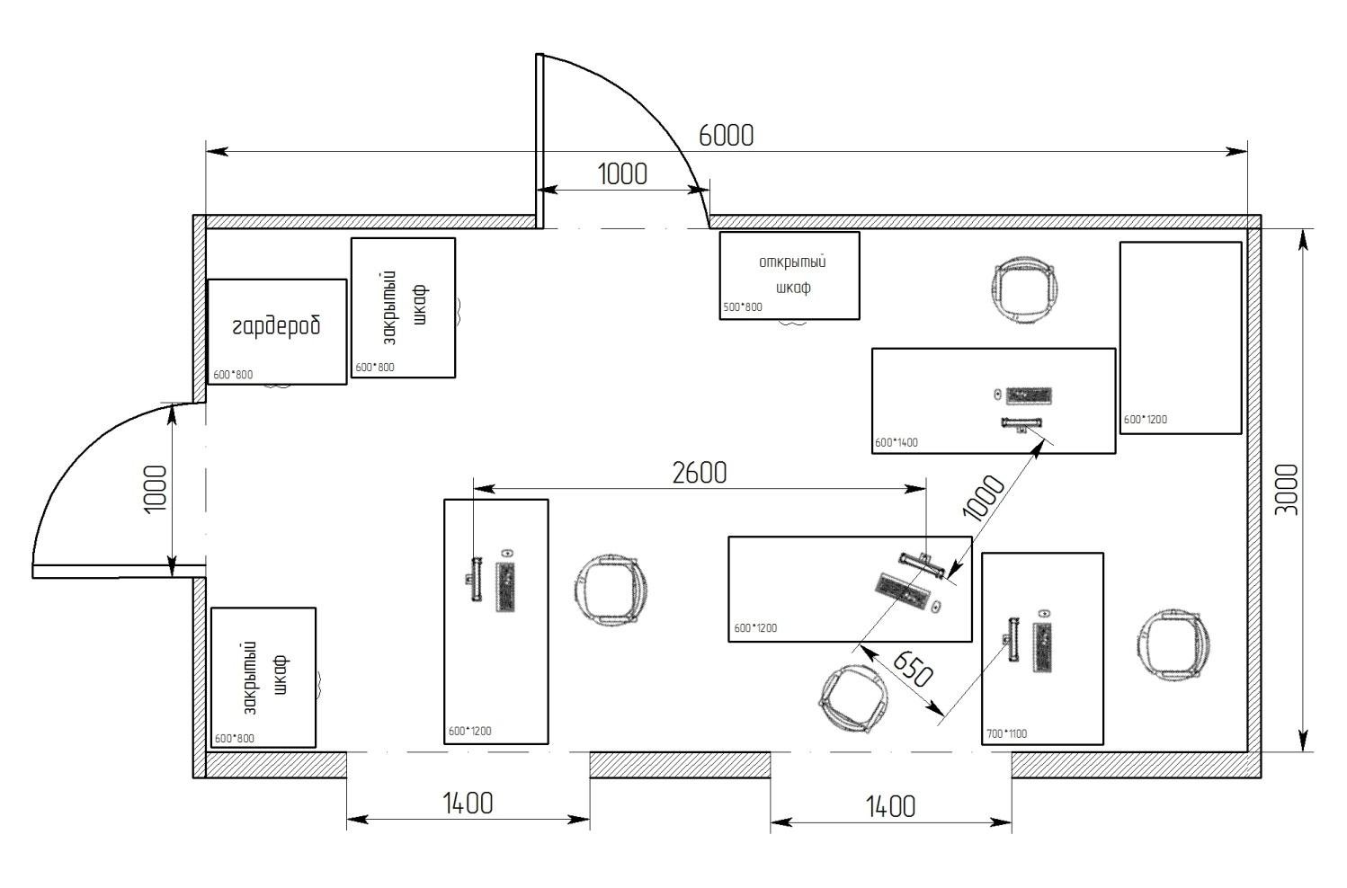 План офиса с расстановкой мебели и размерами