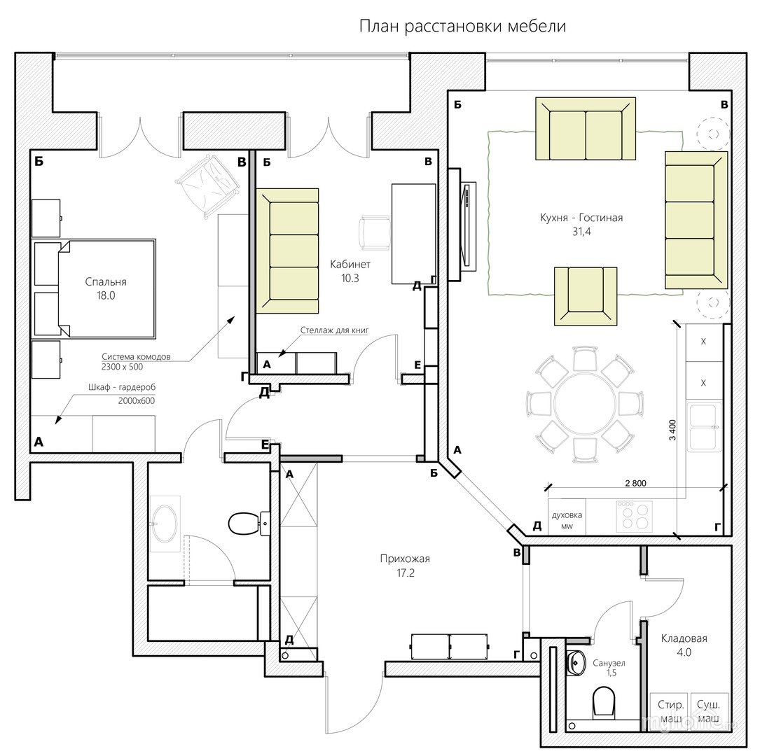 План расстановки мебели кухня чертеж