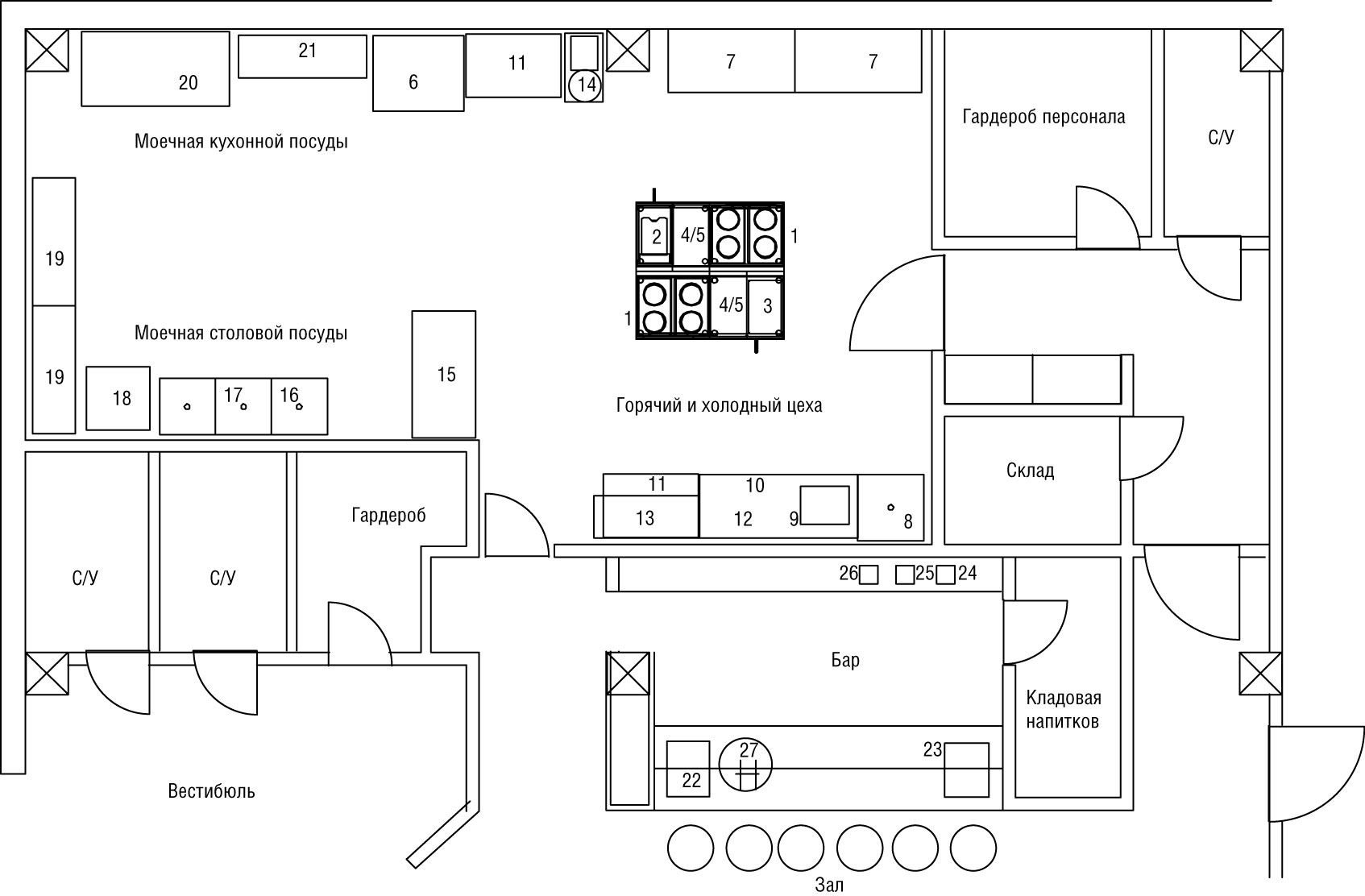 План кухни ресторана чертеж