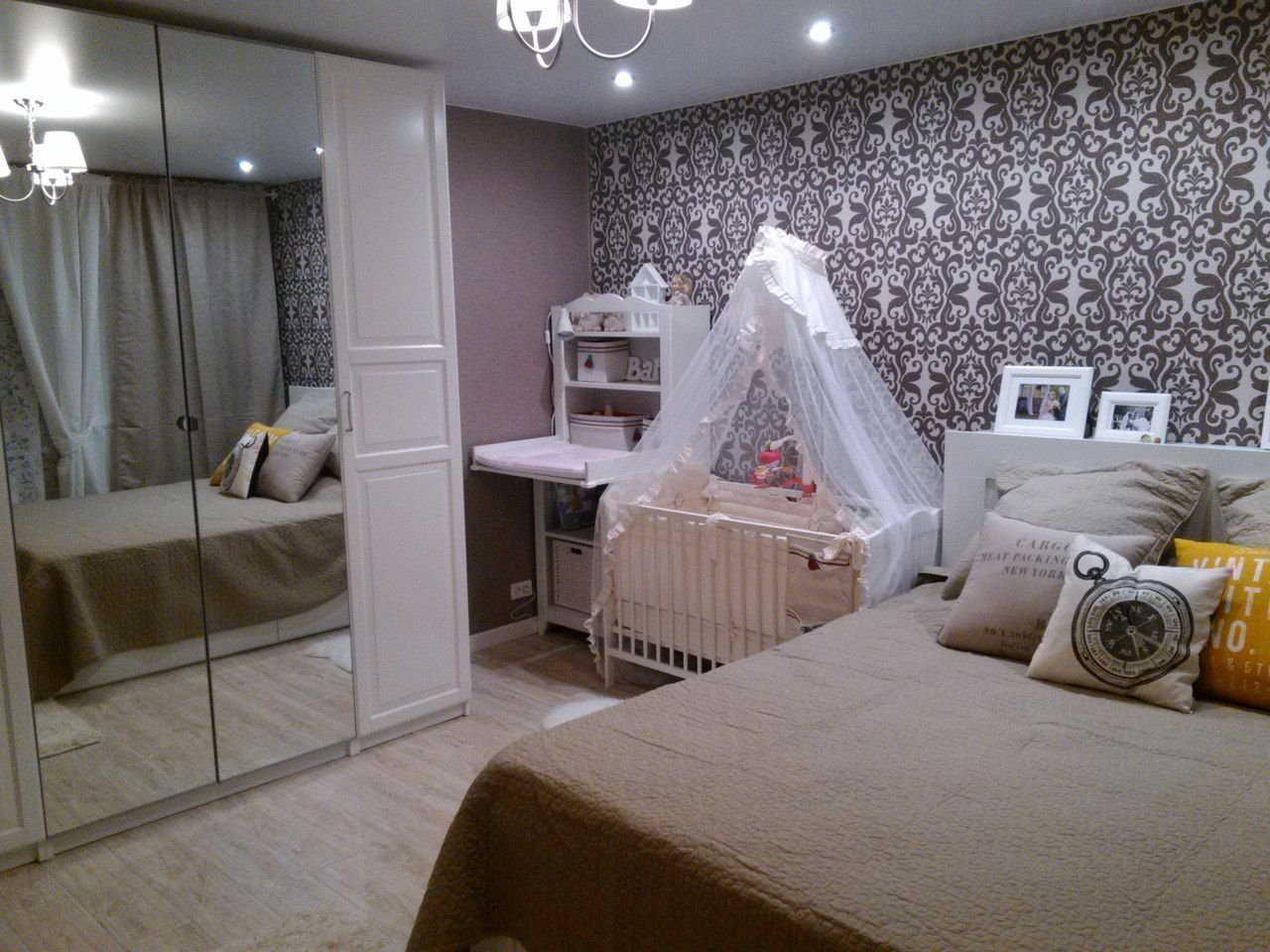 Спальня совмещенная с детской кроваткой