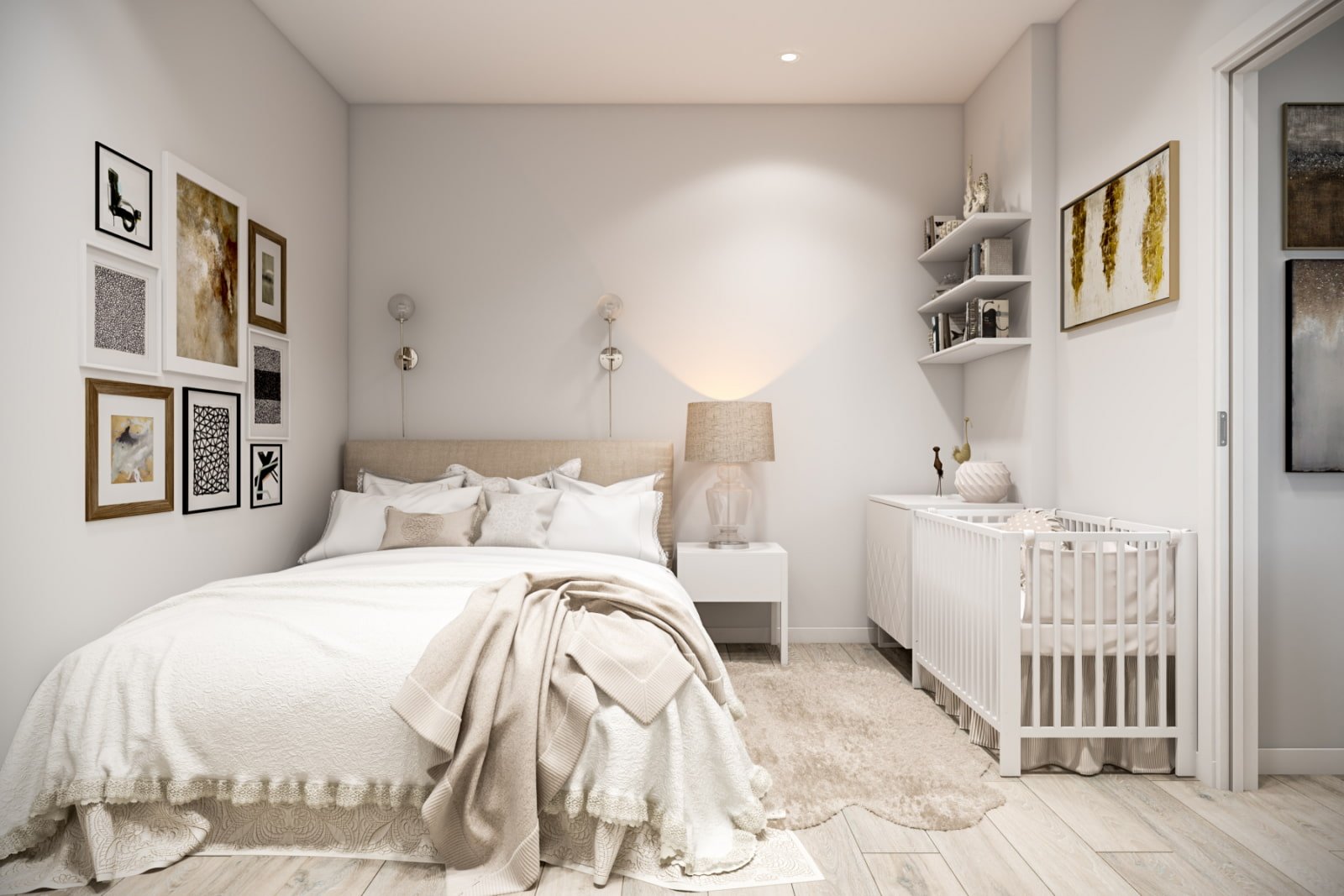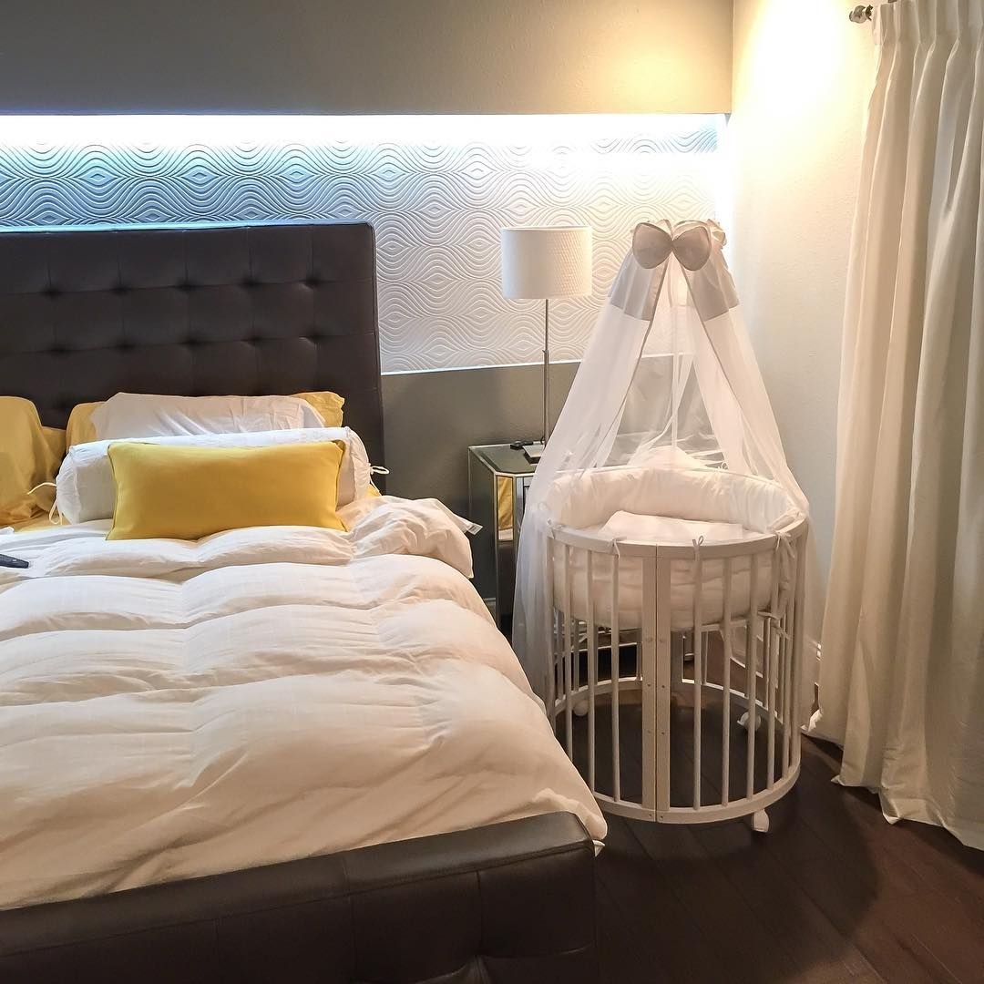 Спальня в современном стиле с детской кроваткой