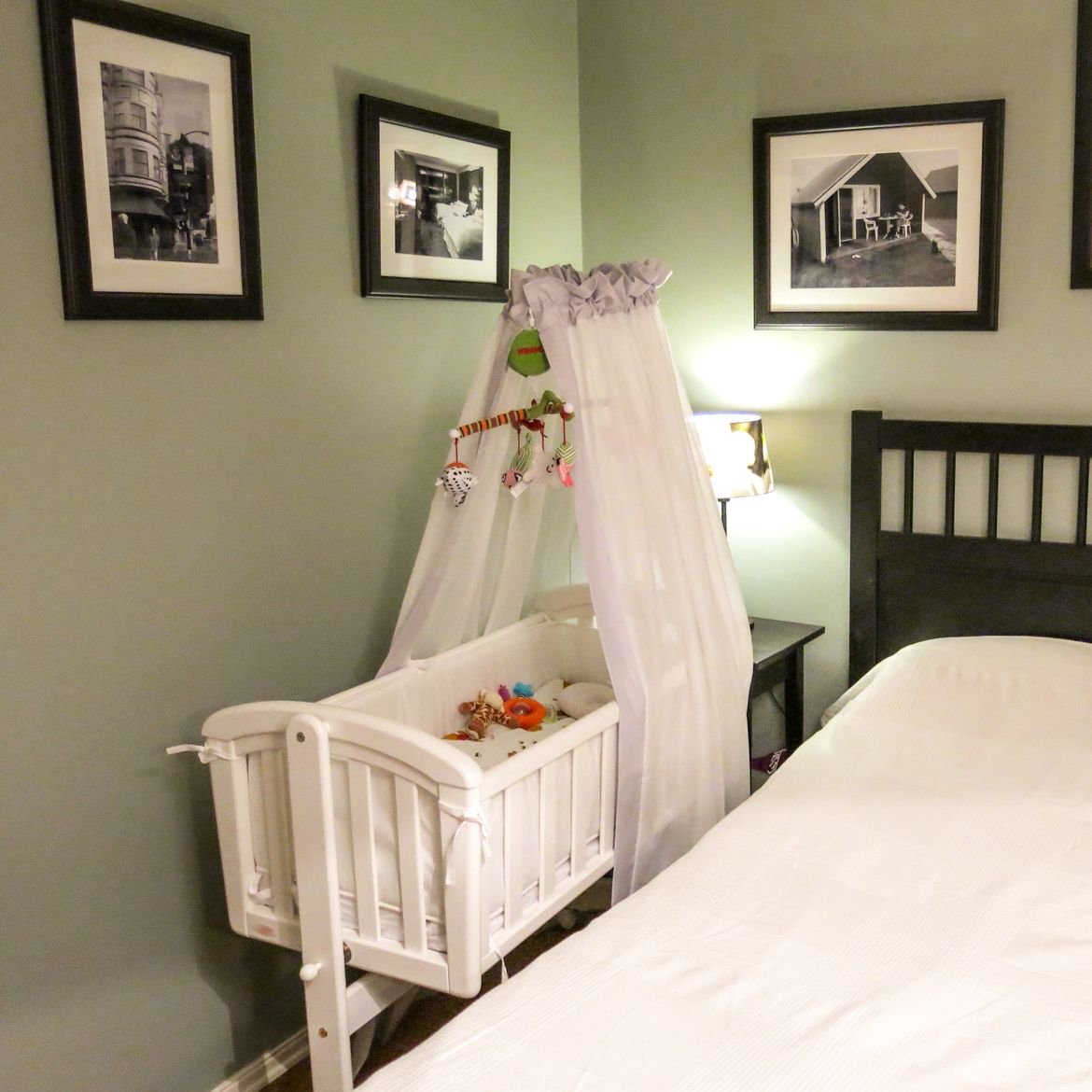 Спальня с приставной детской кроваткой