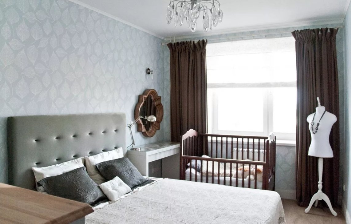 Спальня 10 кв м с детской кроваткой