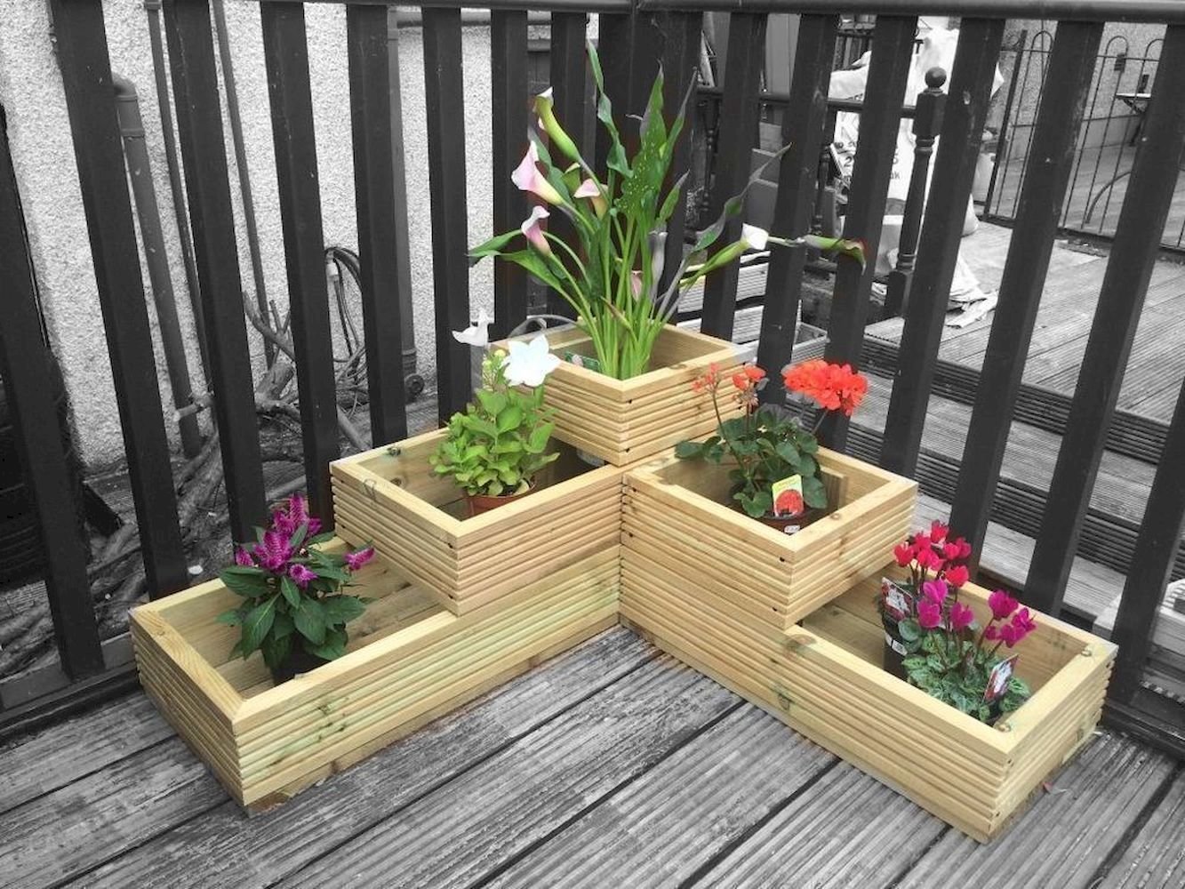 Клумбы из ящиков деревянных