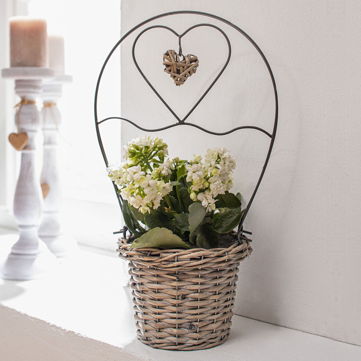 Цветок в плетеном кашпо