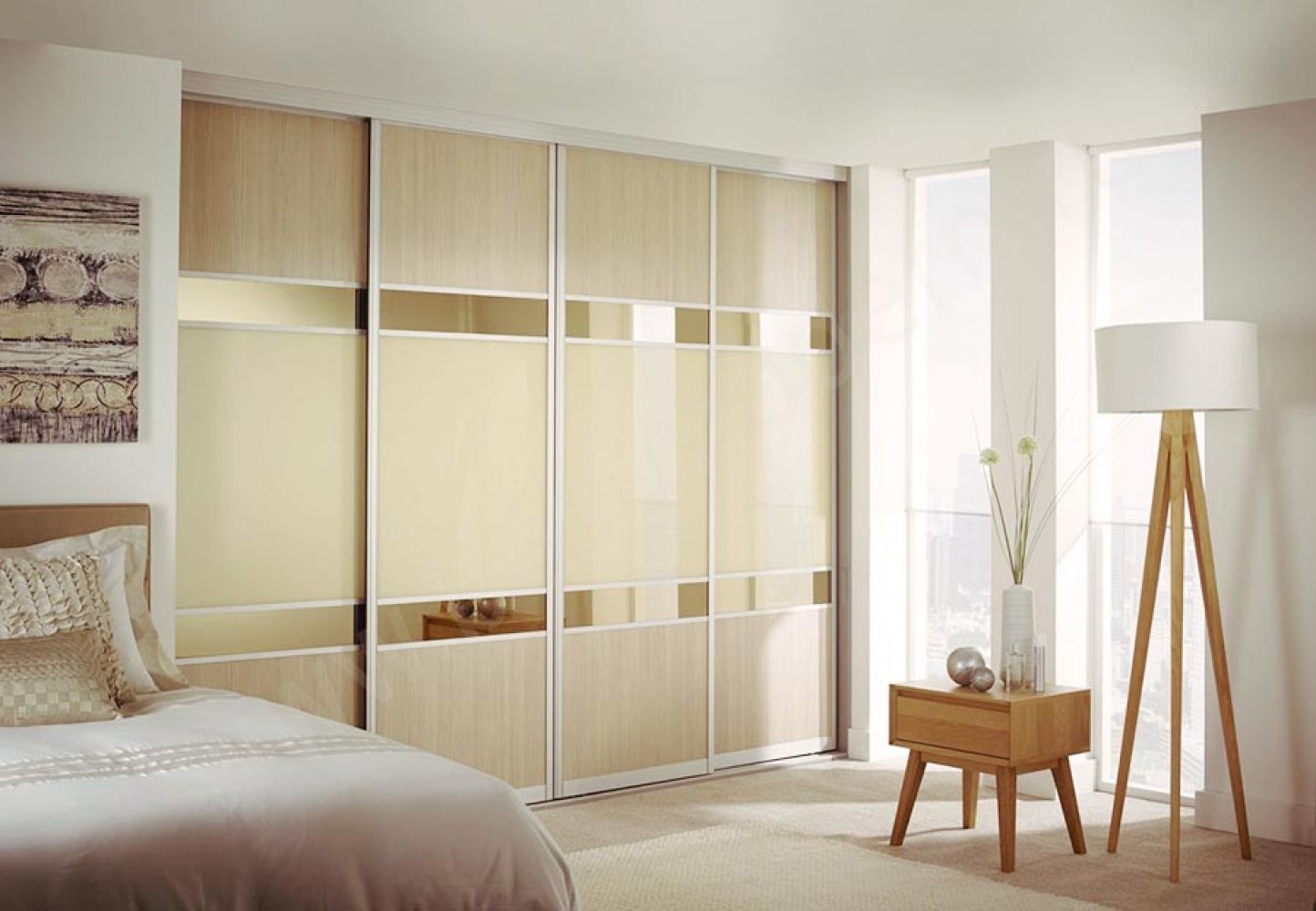 Бежевый шкаф купе в спальню