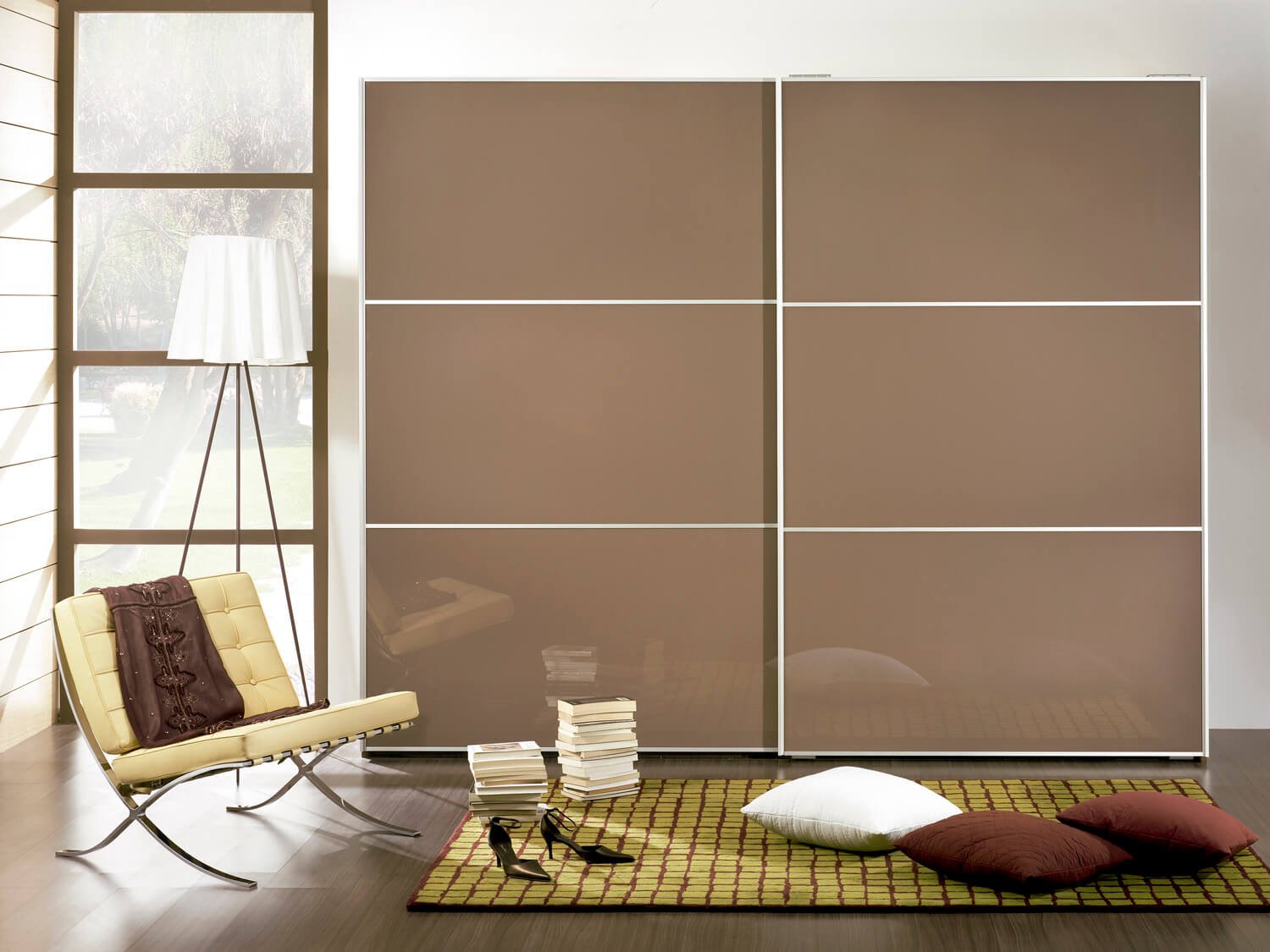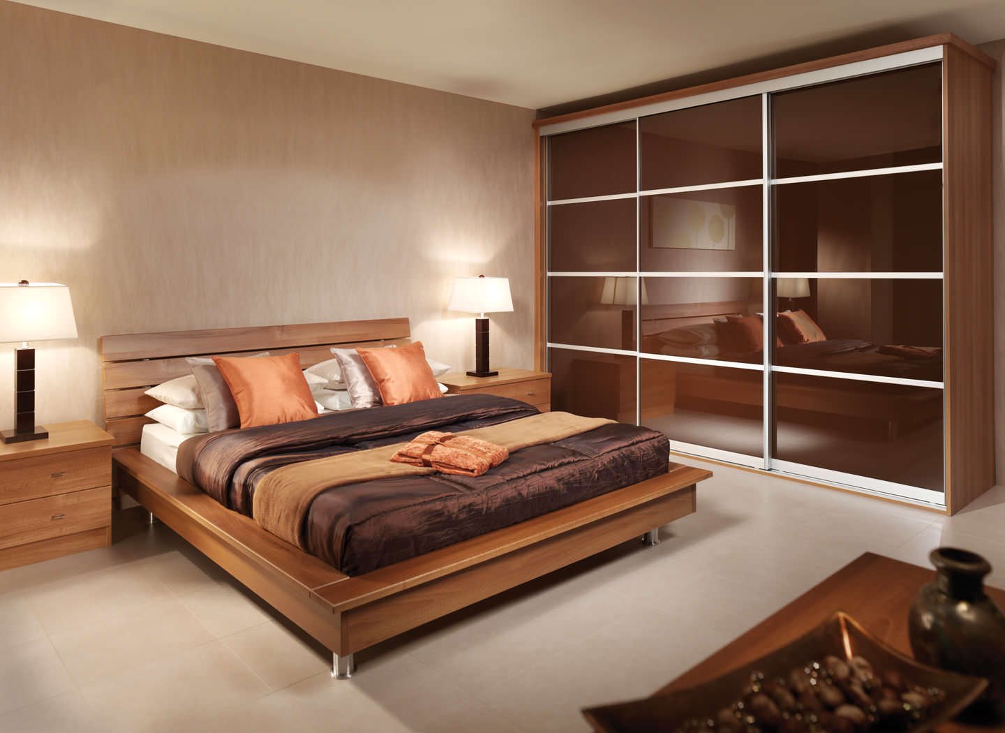 Коричневый шкаф в интерьере спальни