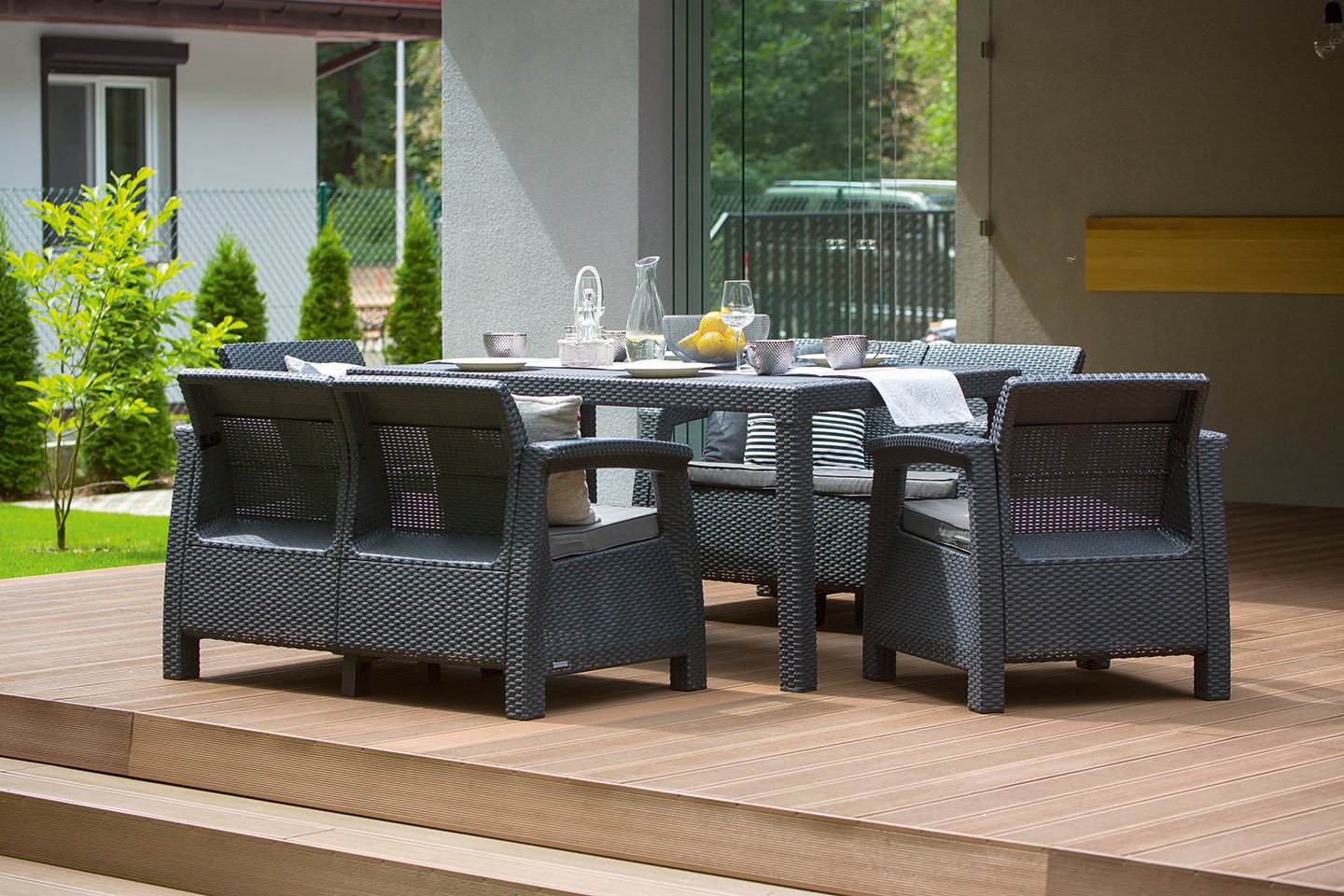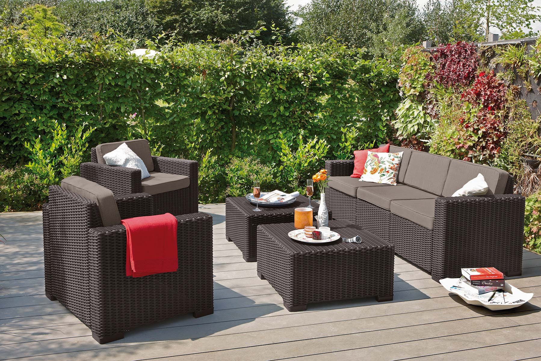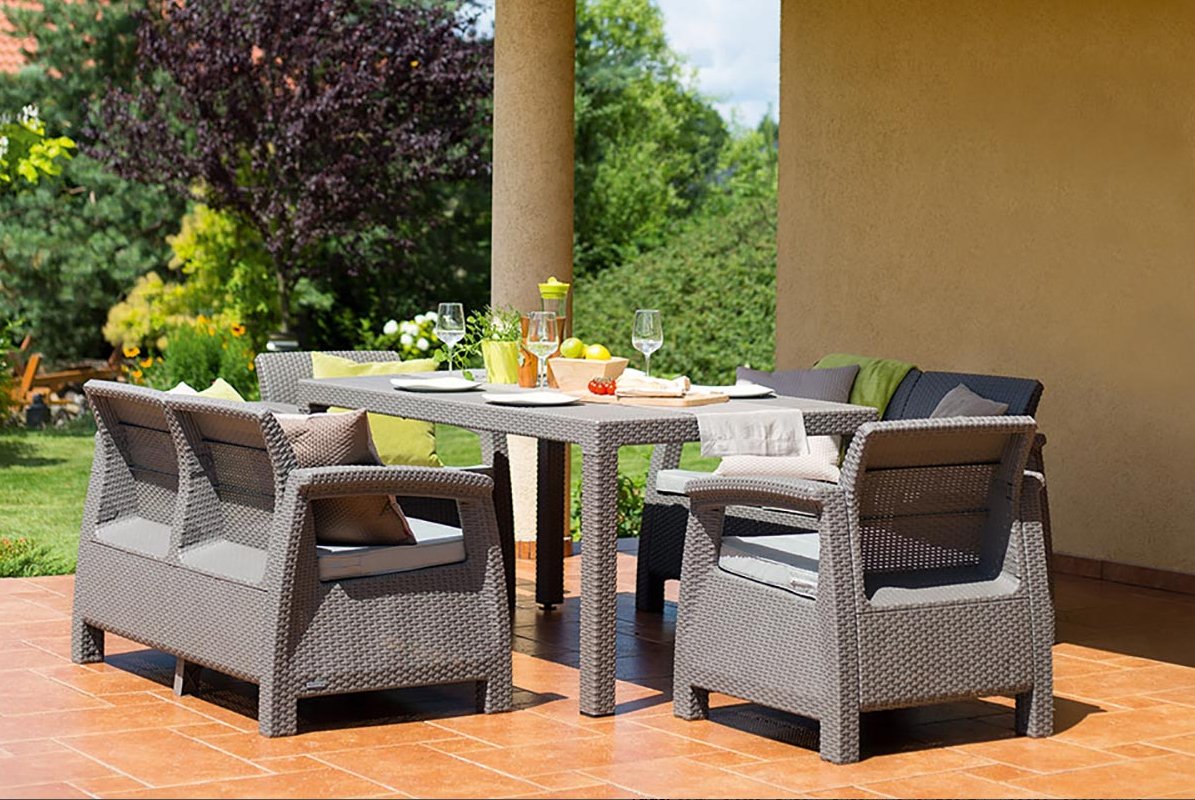 Набор садовой мебели Keter Corfu Set полиротанг коричневый: стол, диван и 2