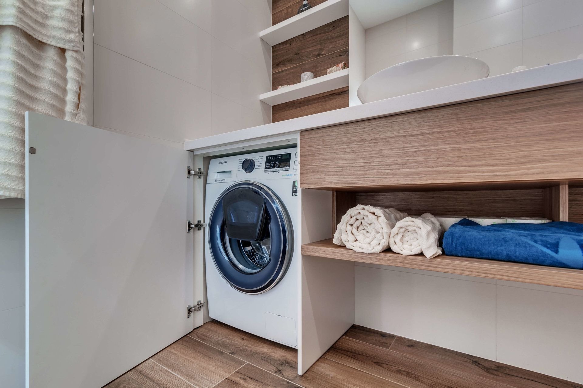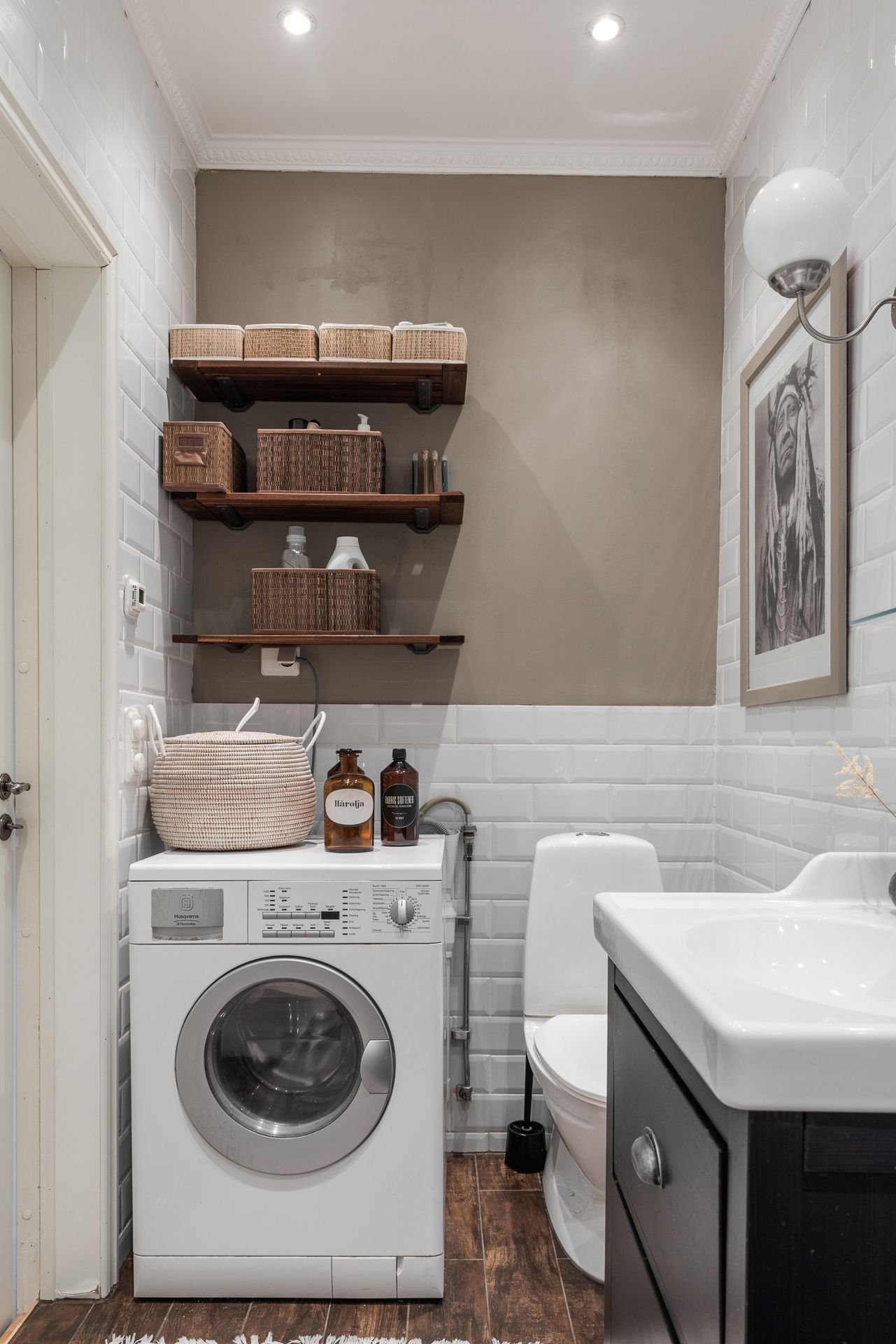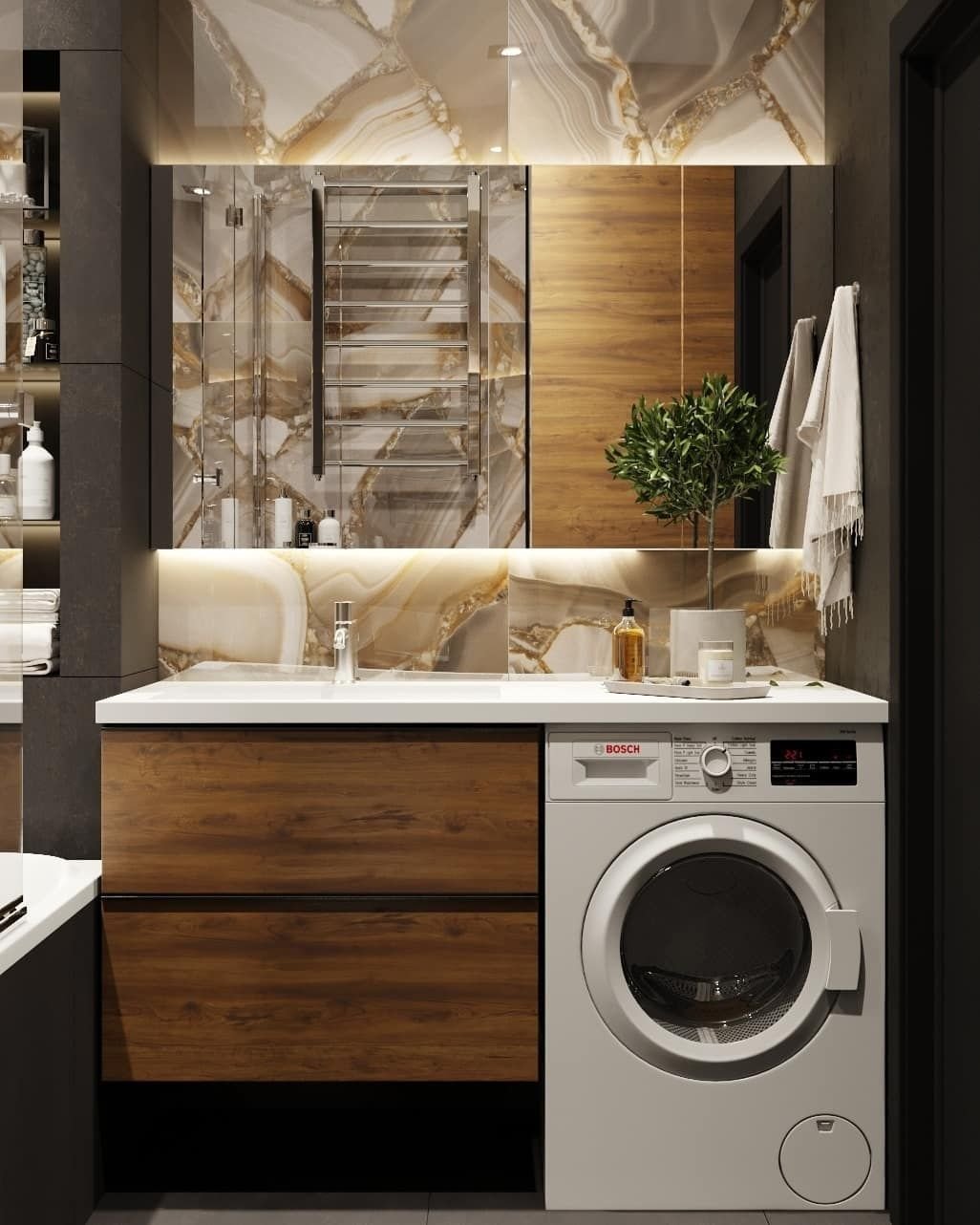 Мебель для маленькой ванной комнаты со стиральной машиной