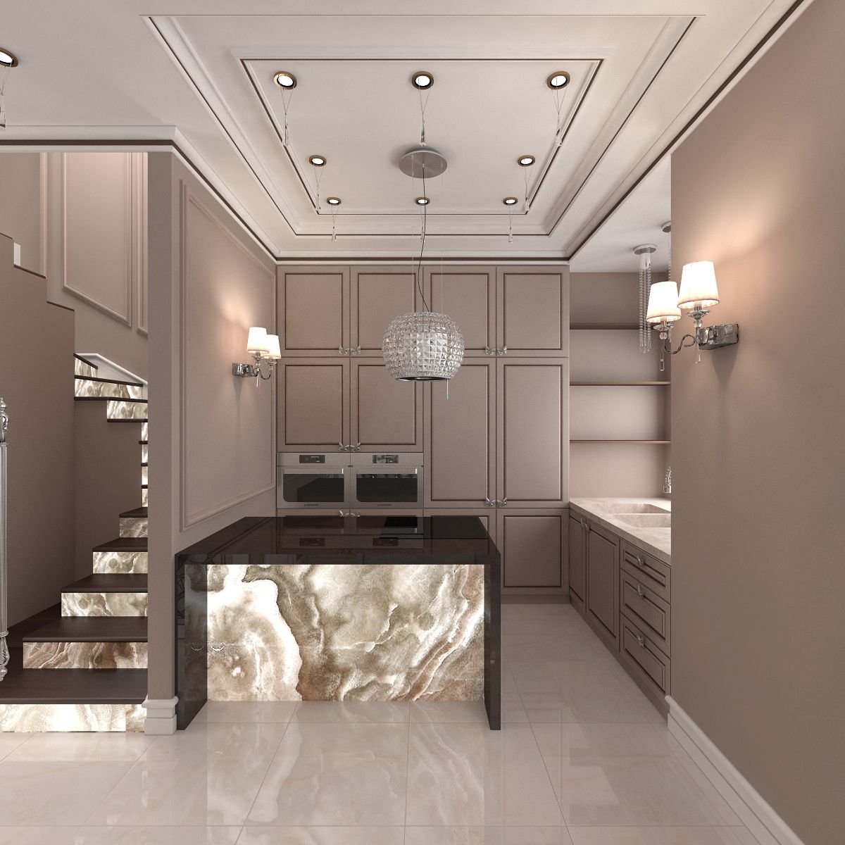 Прихожая с лестницей Неоклассика