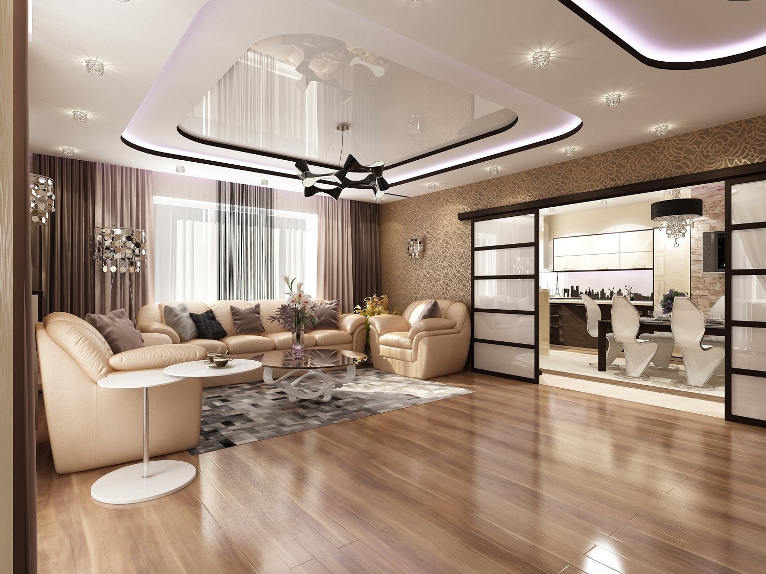 Потолок из гипсокартона гостиная