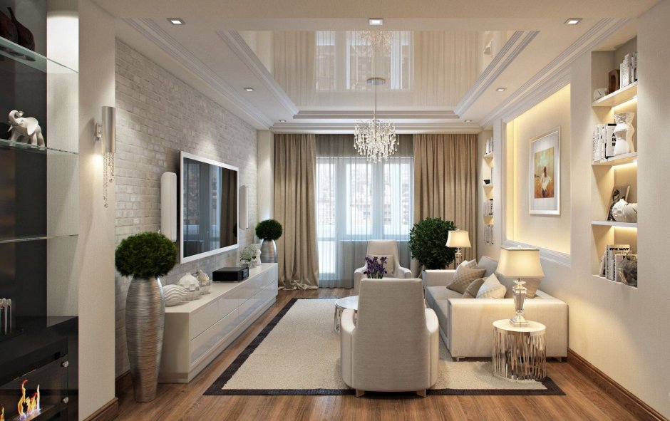 Интерьер узкого зала в квартире