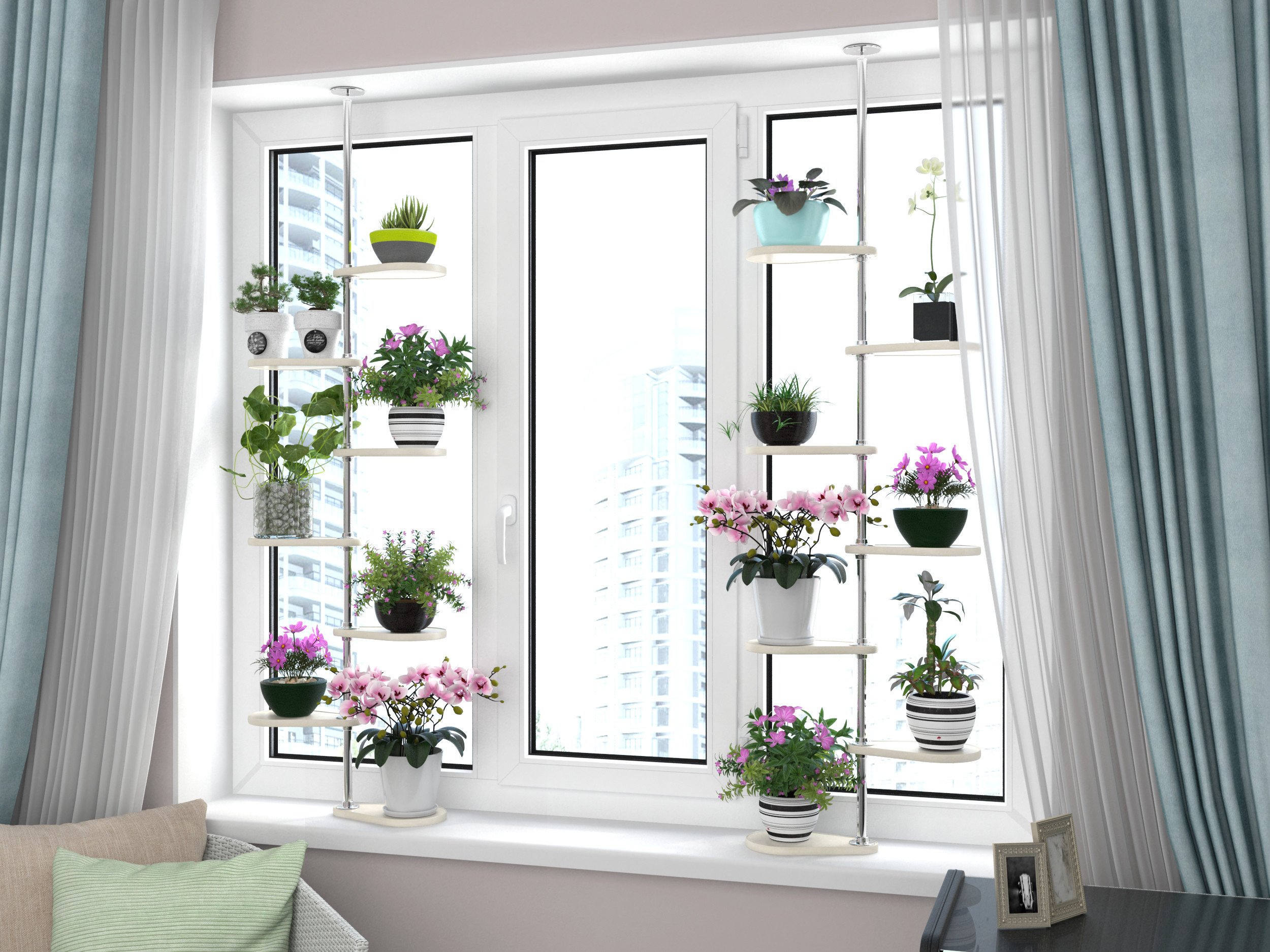 Оконная подставка дуэт на 14 горшков