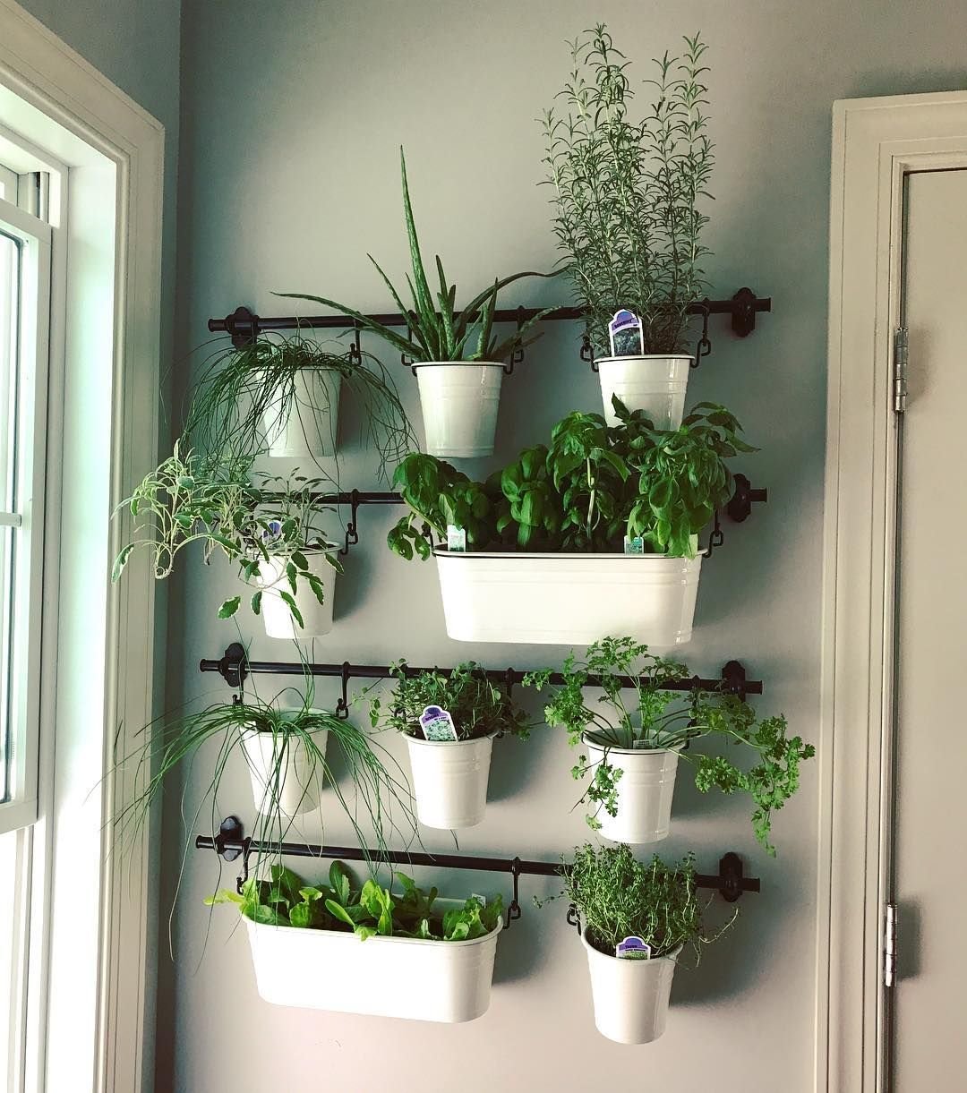 Полка с растениями на кухне
