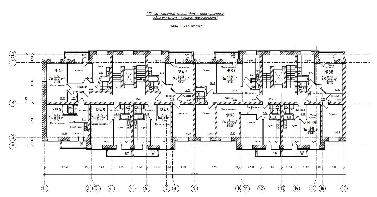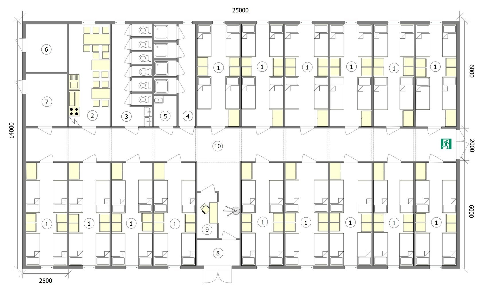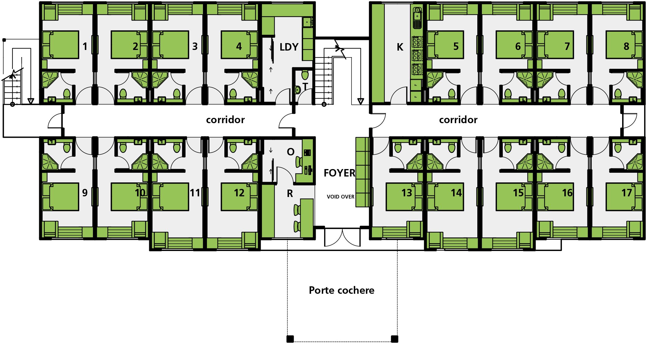 План общежития коридорного типа
