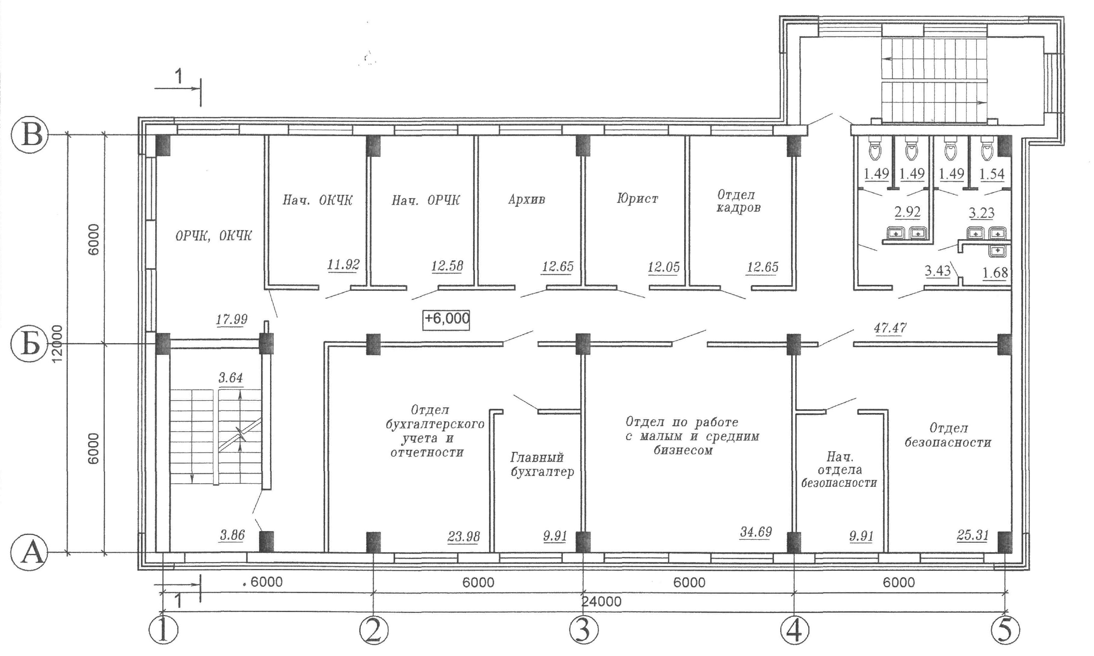 План одноэтажного административного здания чертеж