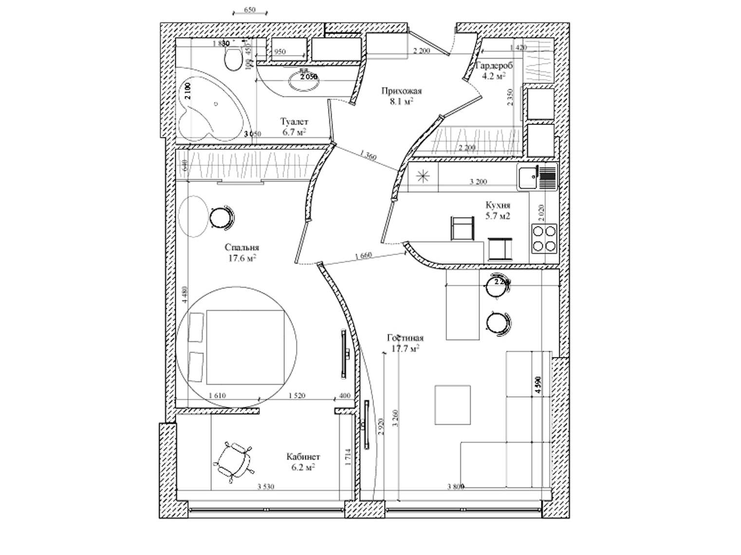 Планировка двушки с кухней гостиной