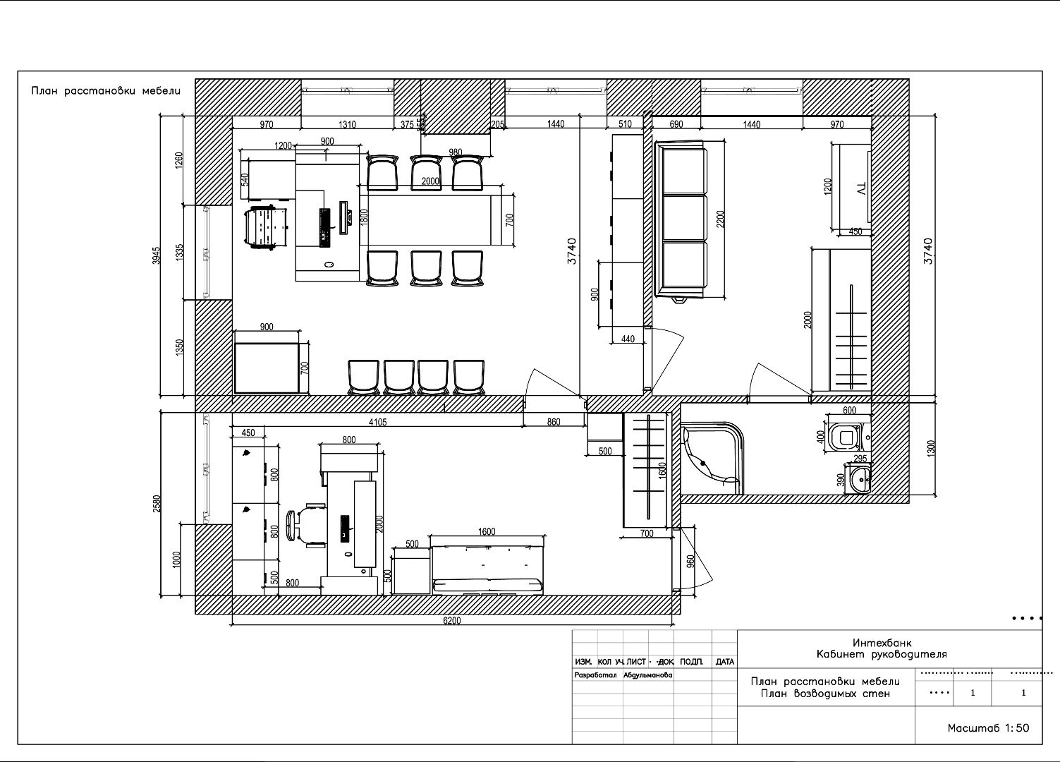 План расстановки мебели в офисе чертеж