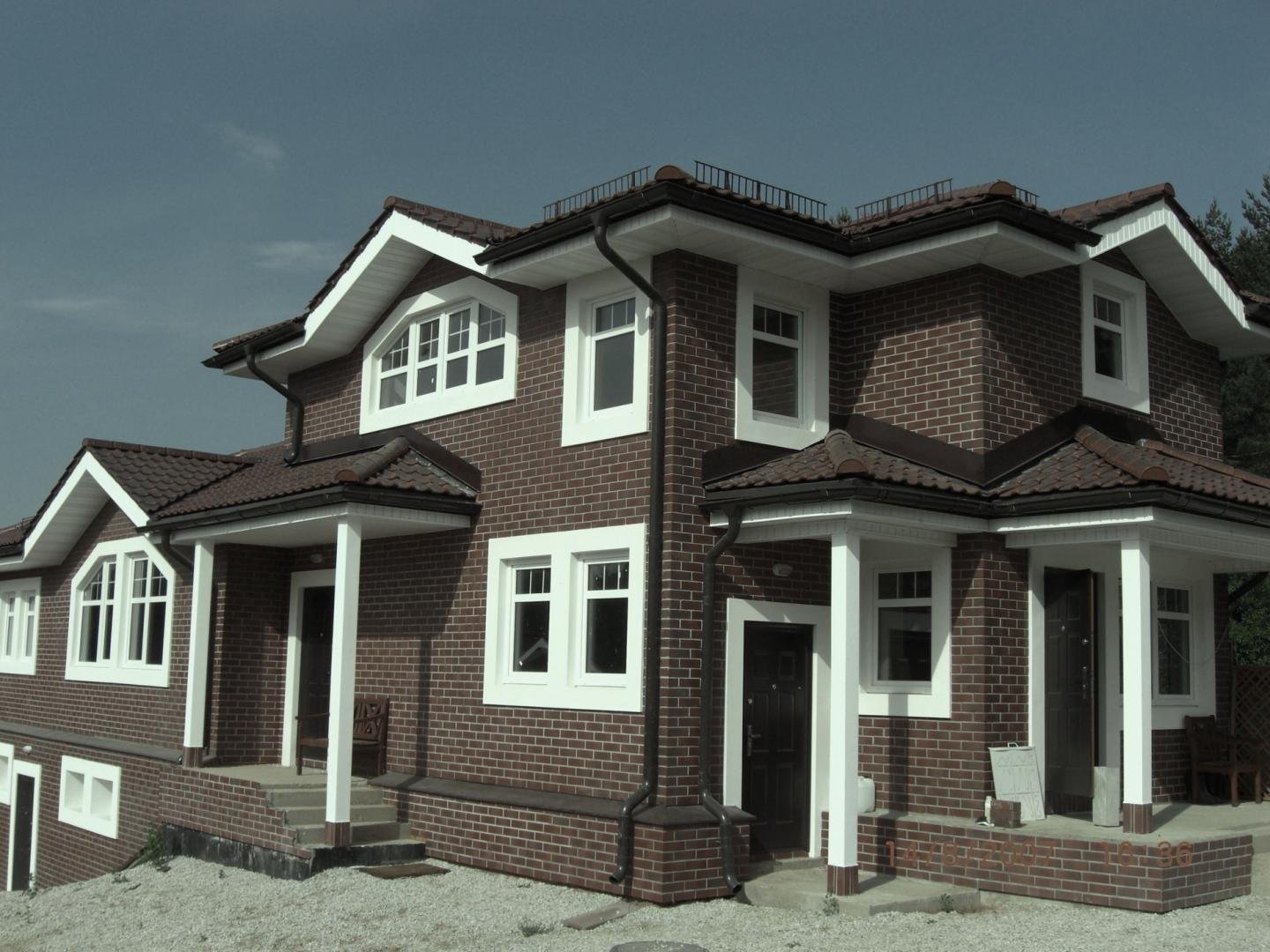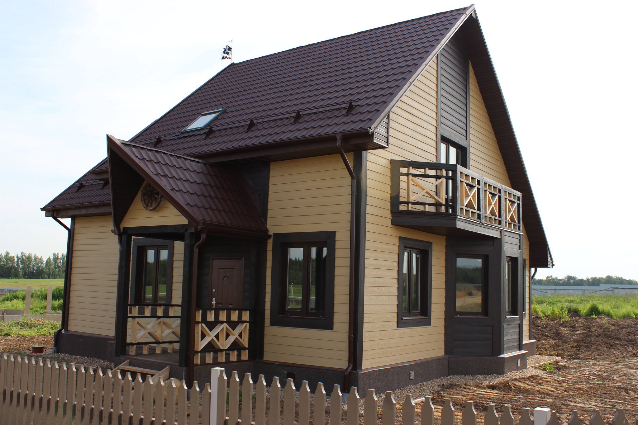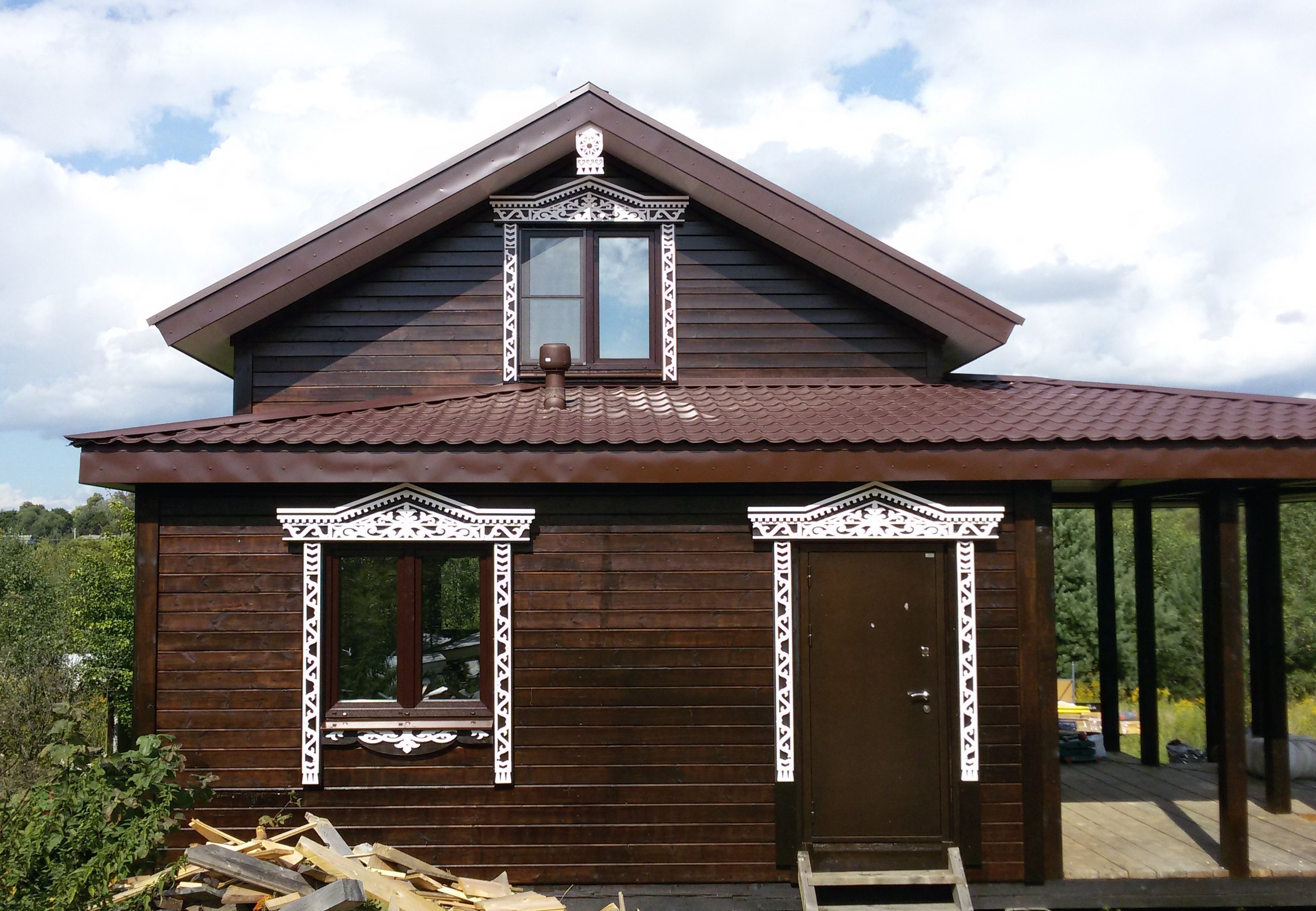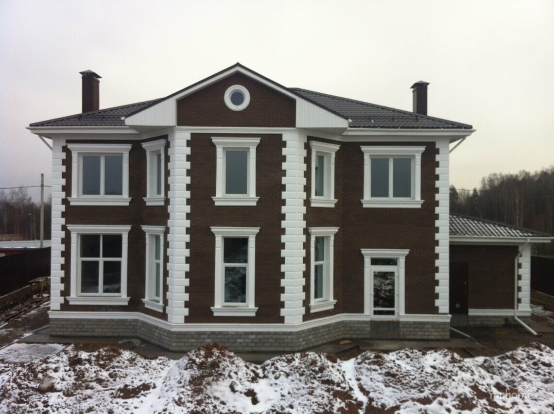 Коричневый дом с белой отделкой