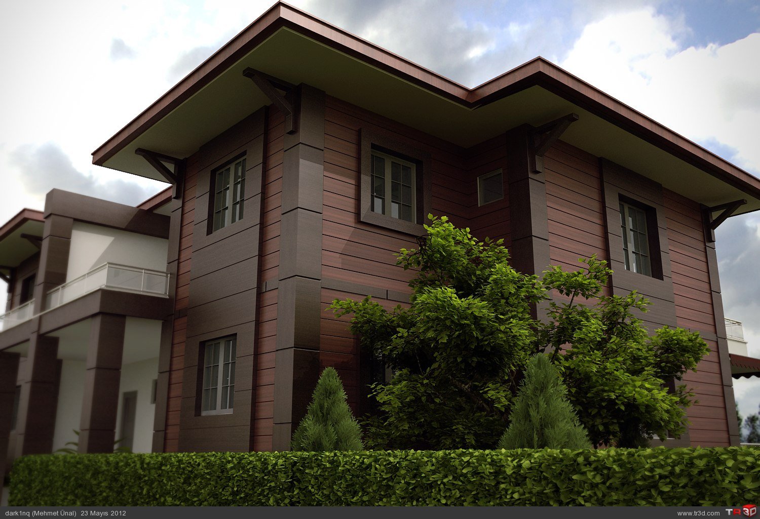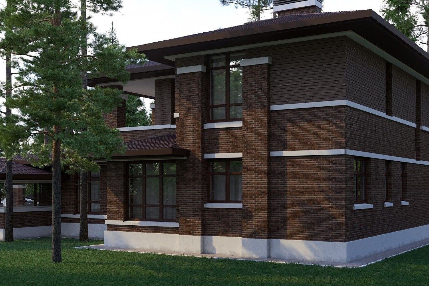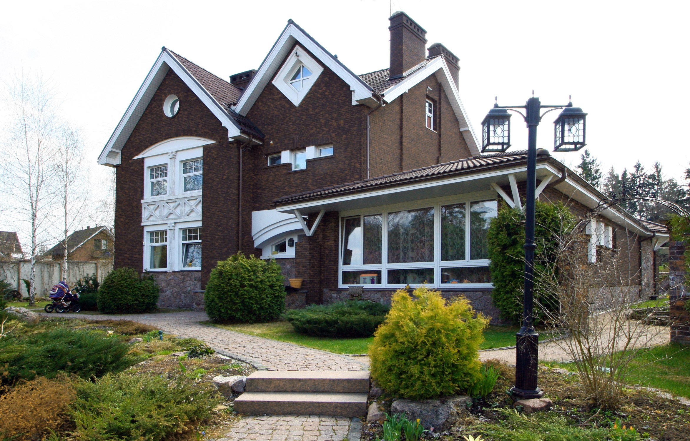 Коричневый дом с белой отделкой