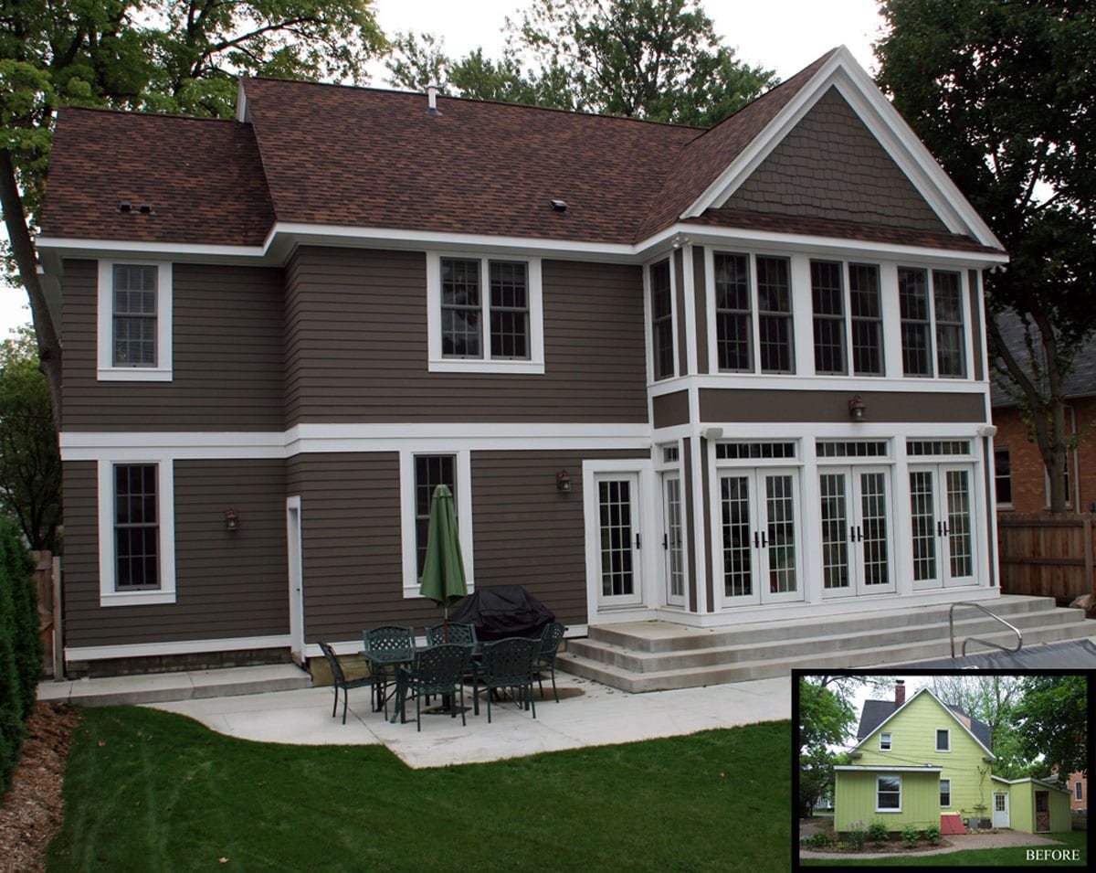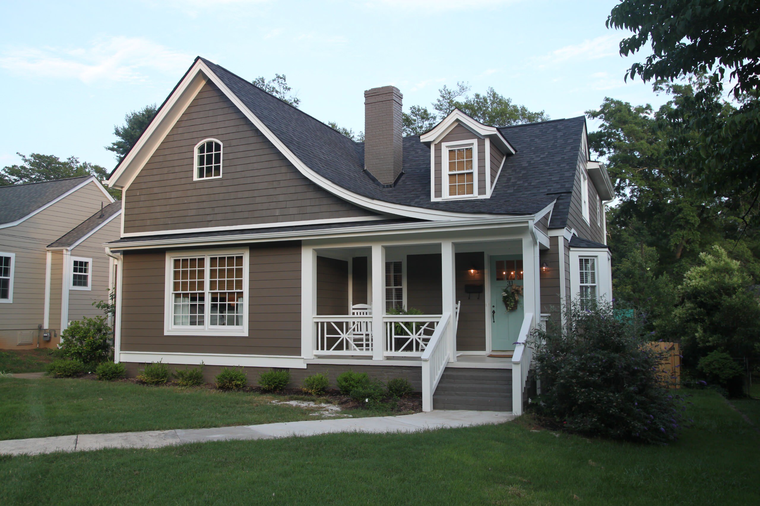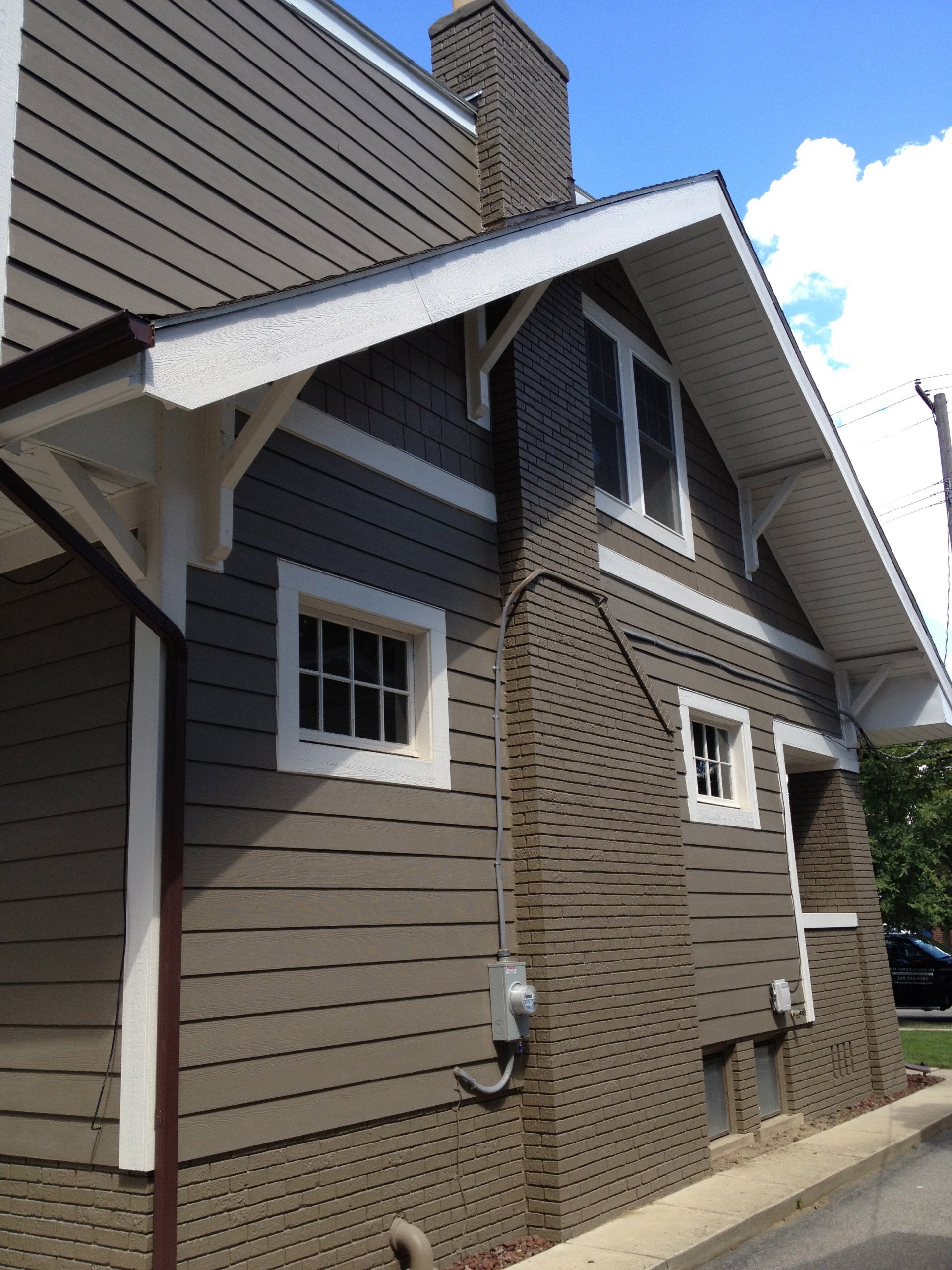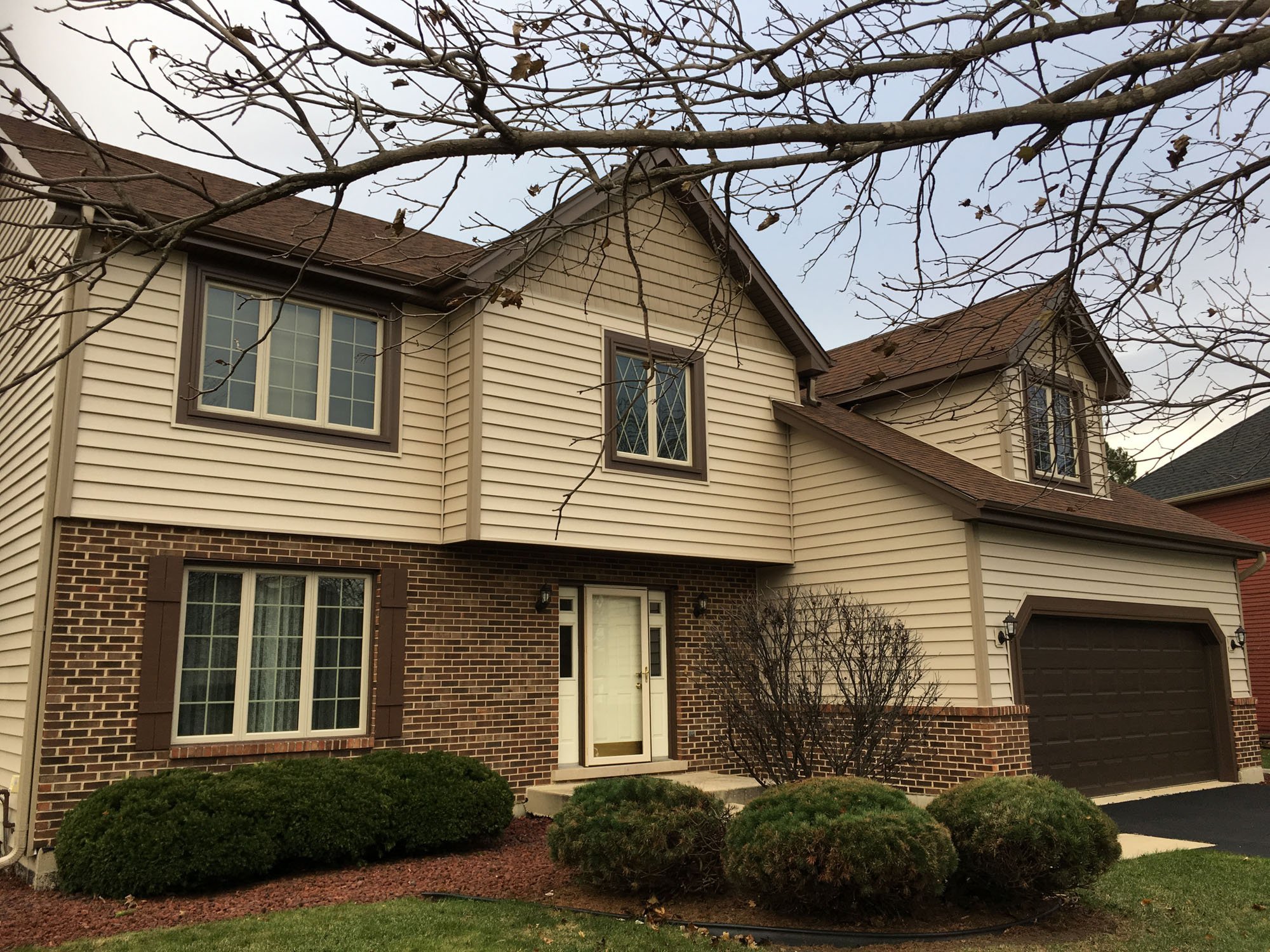 Коричневый дом с белой отделкой