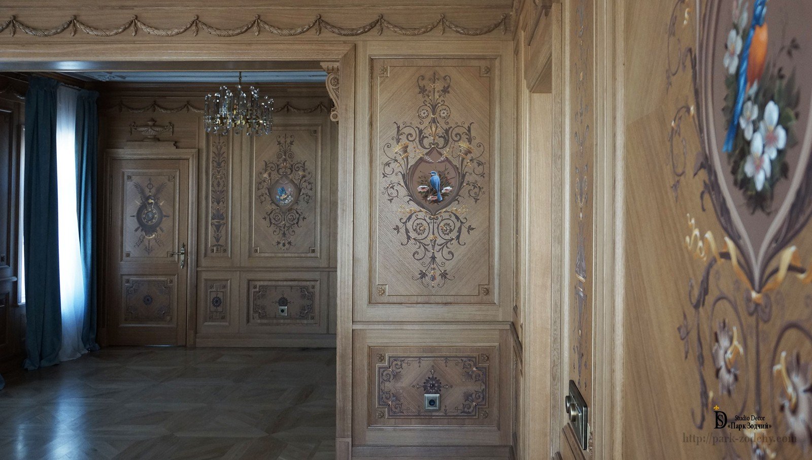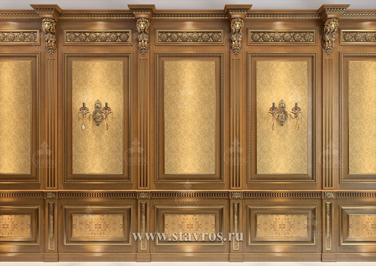 Комментируют Все стены кабинета украшены резными панелями золоченым: