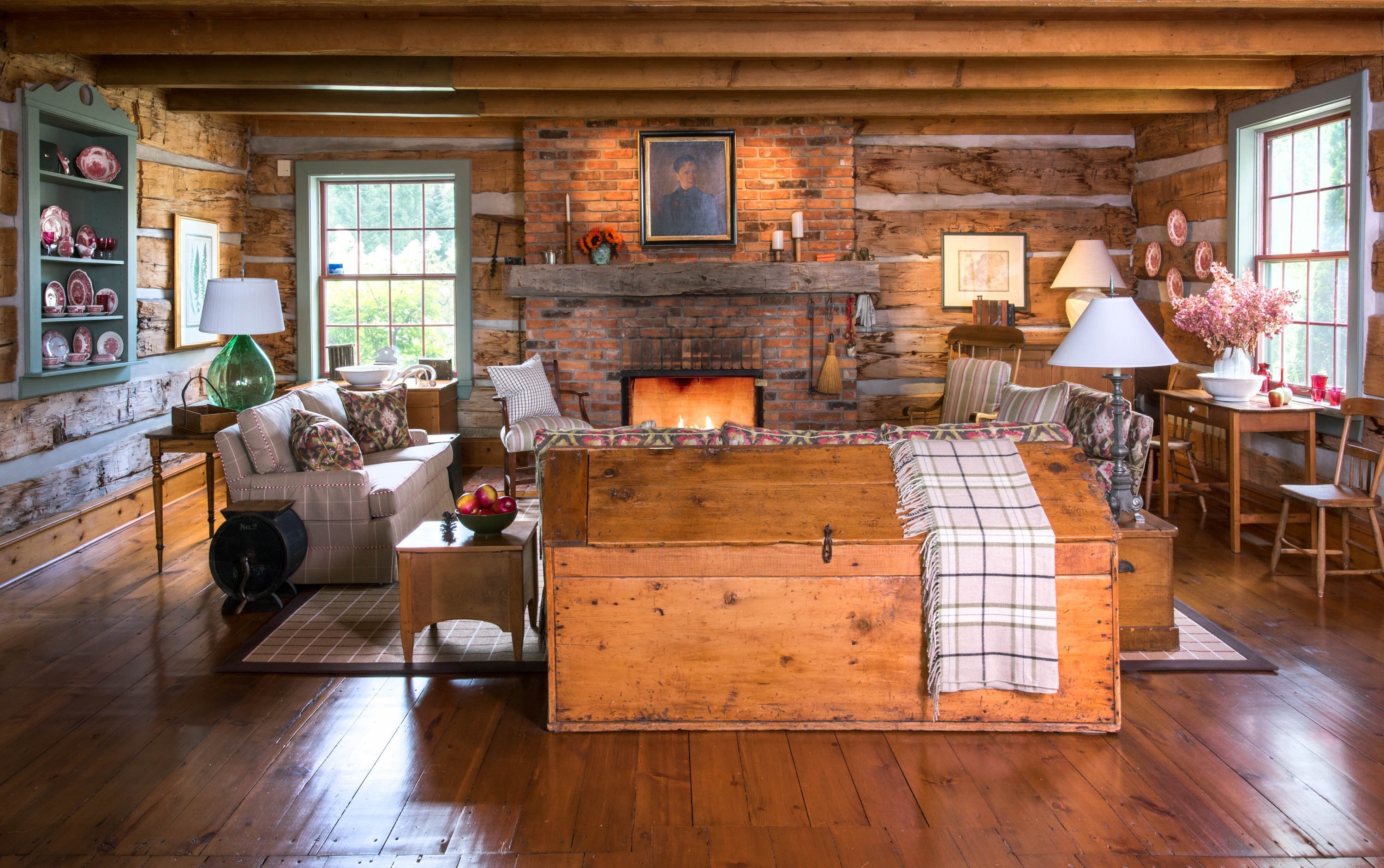 Гостиная в срубовом доме в стиле Кантри