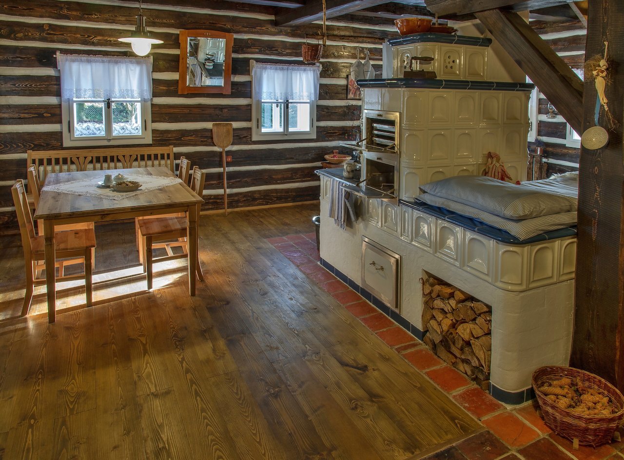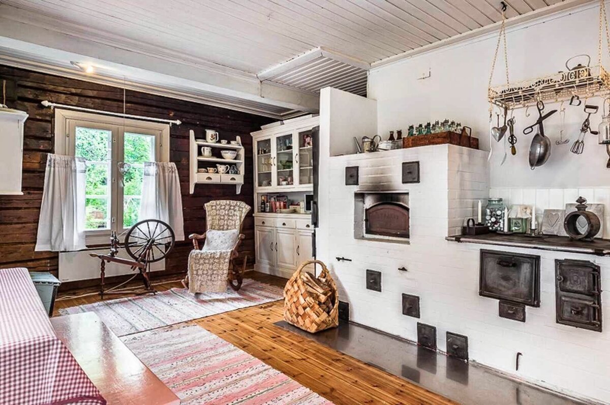 Интерьер деревянного дома с печкой