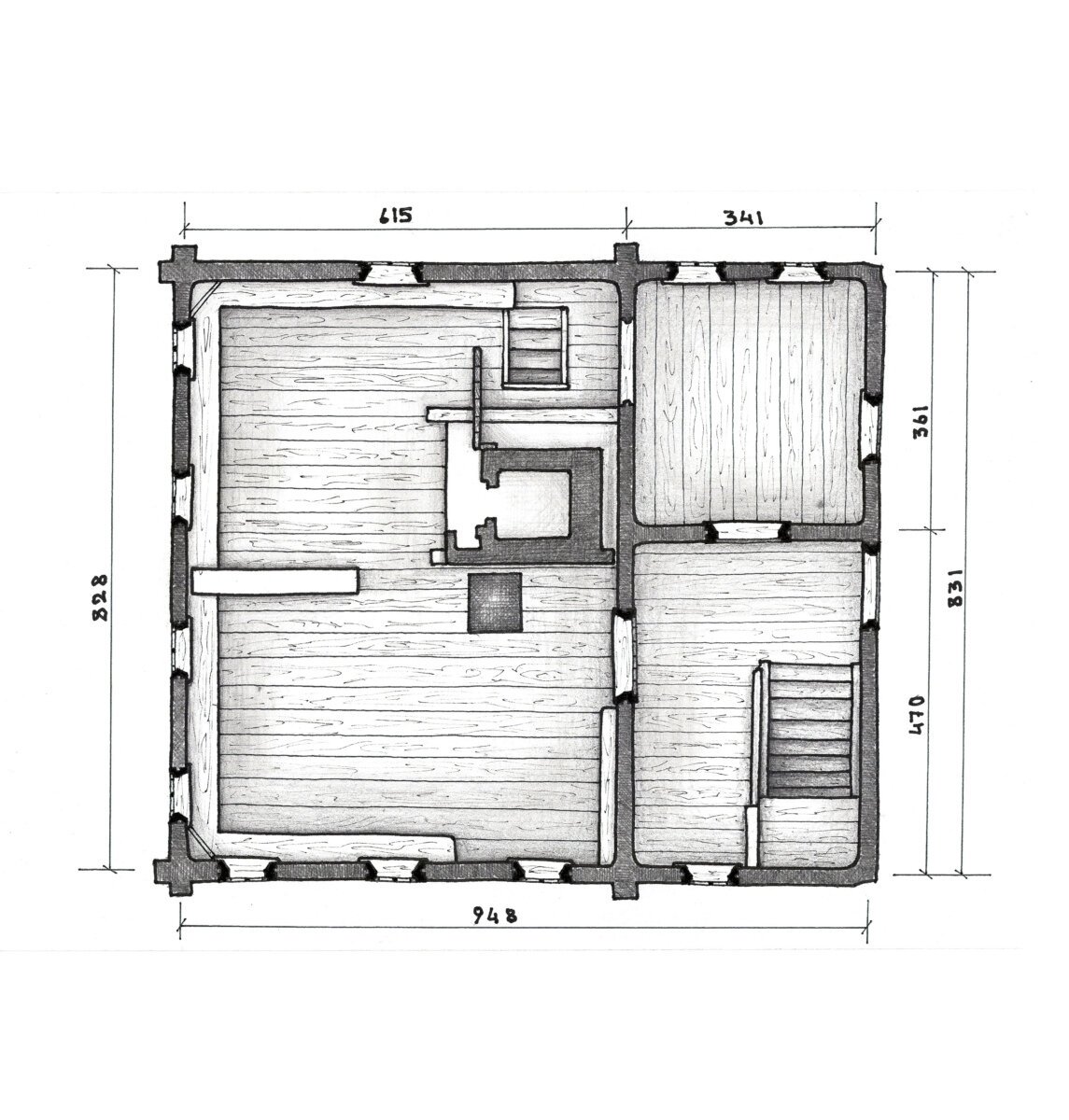 Чертеж деревенского дома