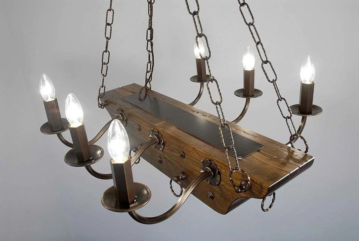 Люстры из дерева и металла