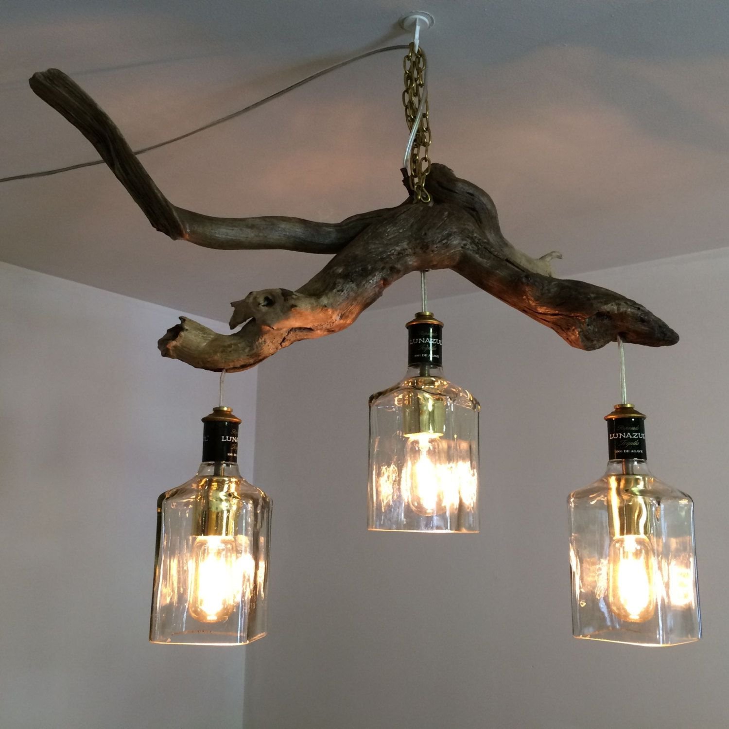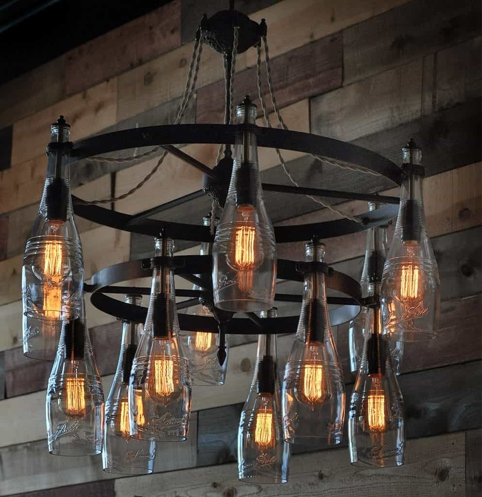 Люстра из дерева и бутылок