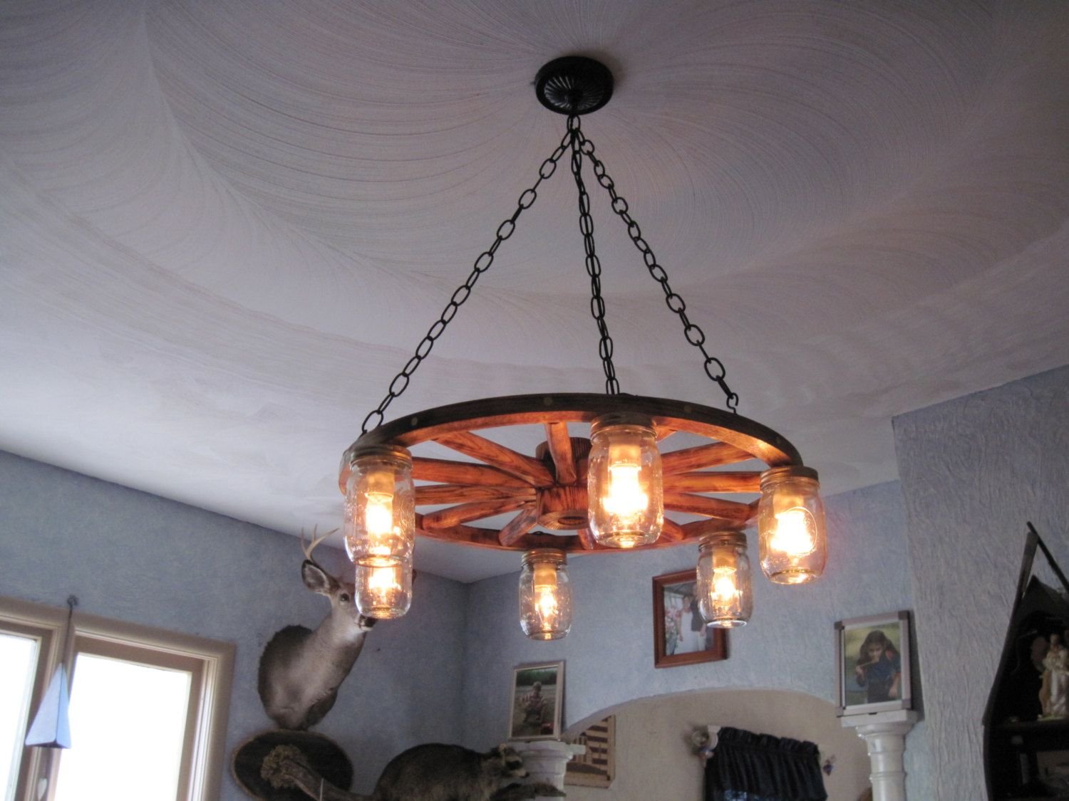 Люстра колесо самодельная в интерьере