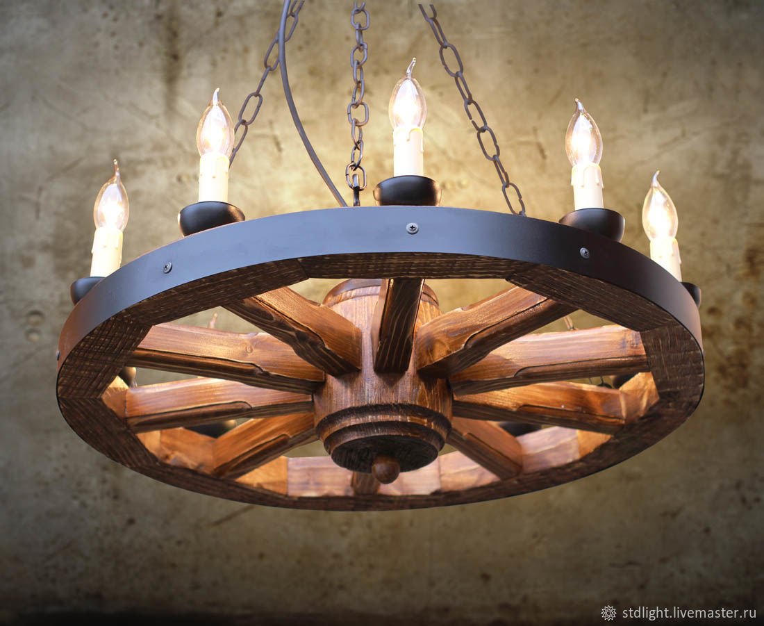 Деревянные люстры колесо
