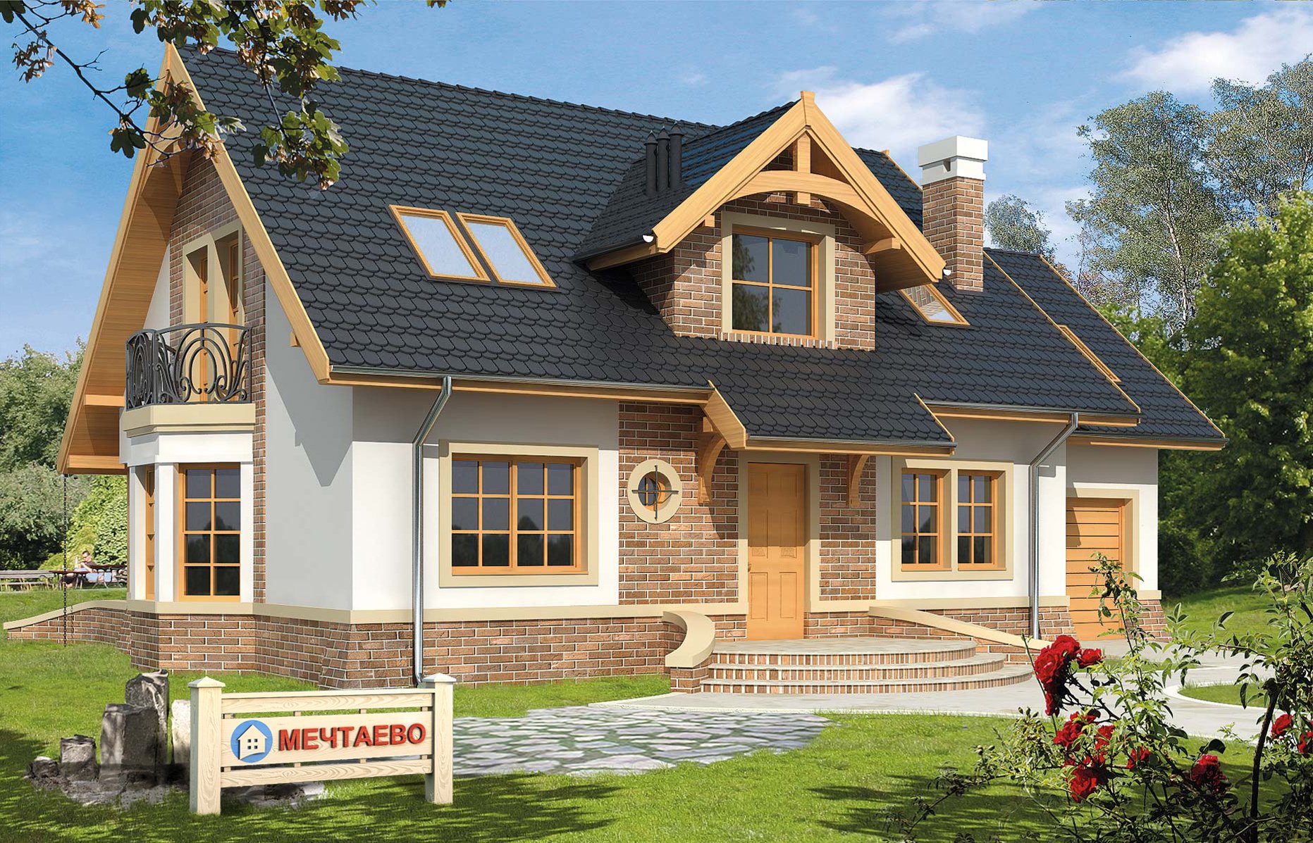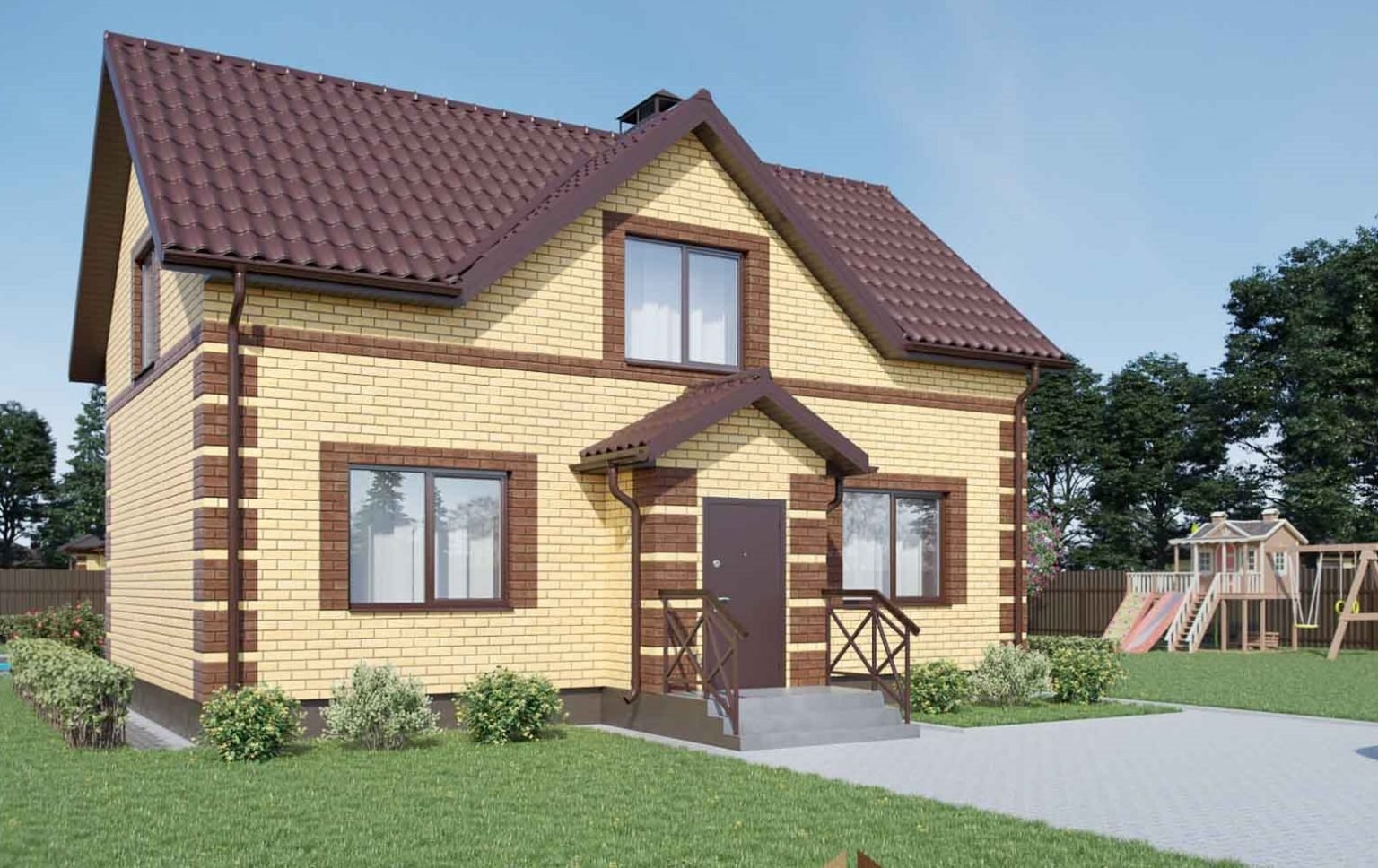 Дом с мансардой из кирпича