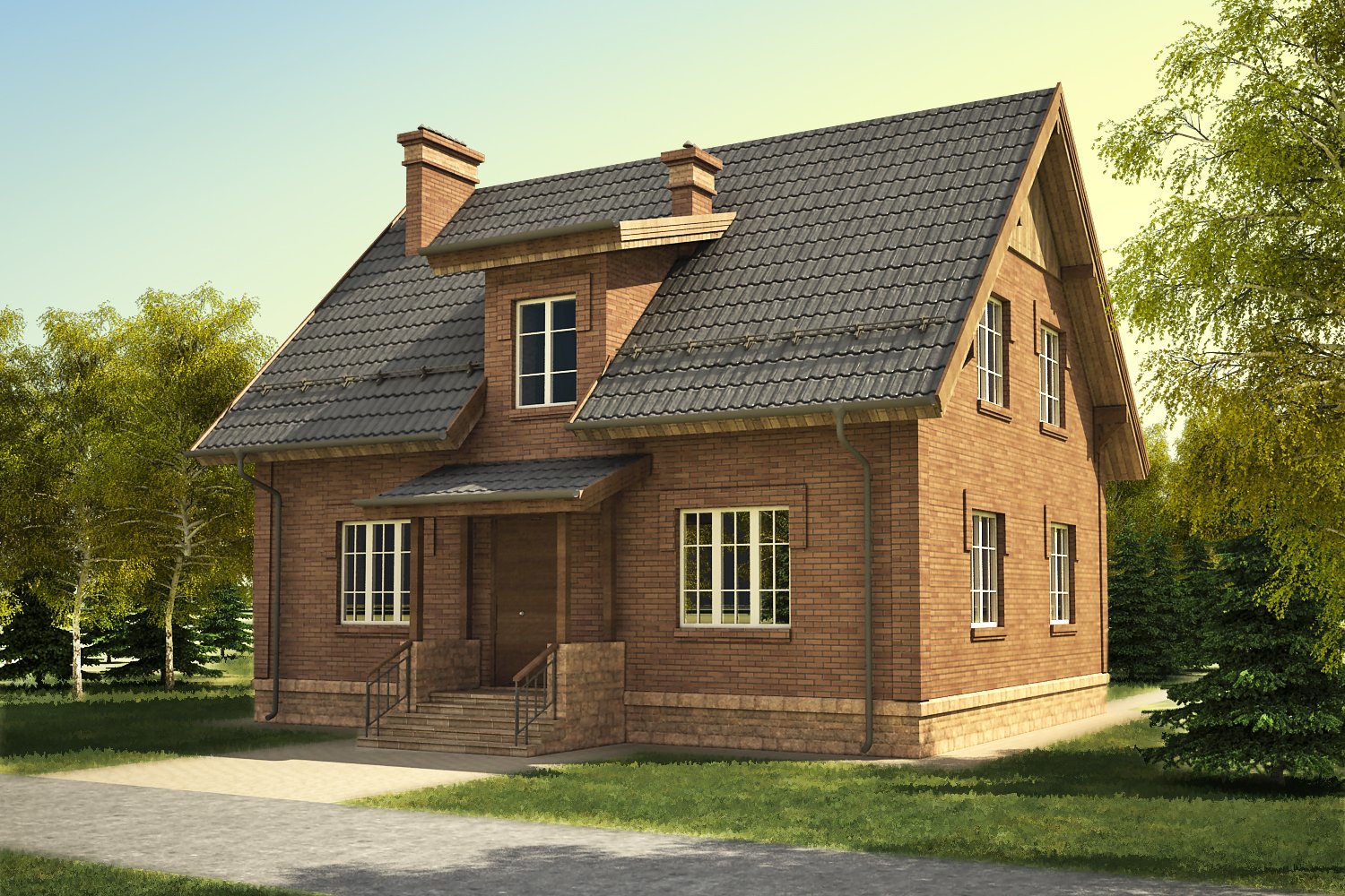 Кирпичный дом с мансардом