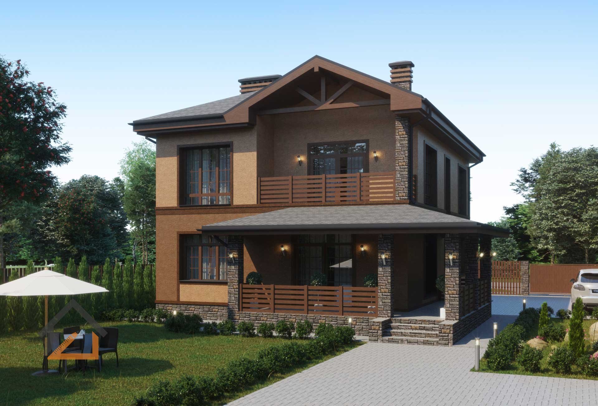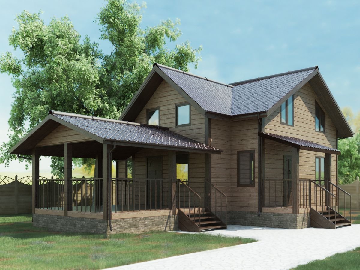 Двухэтажный дом из бруса с террасой