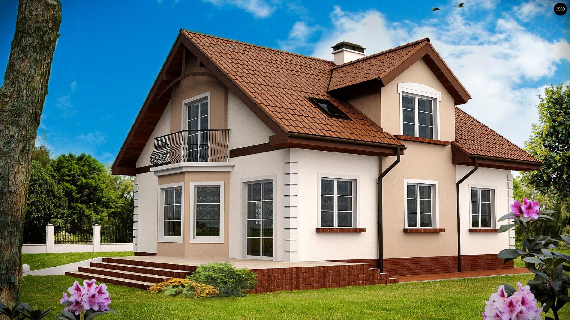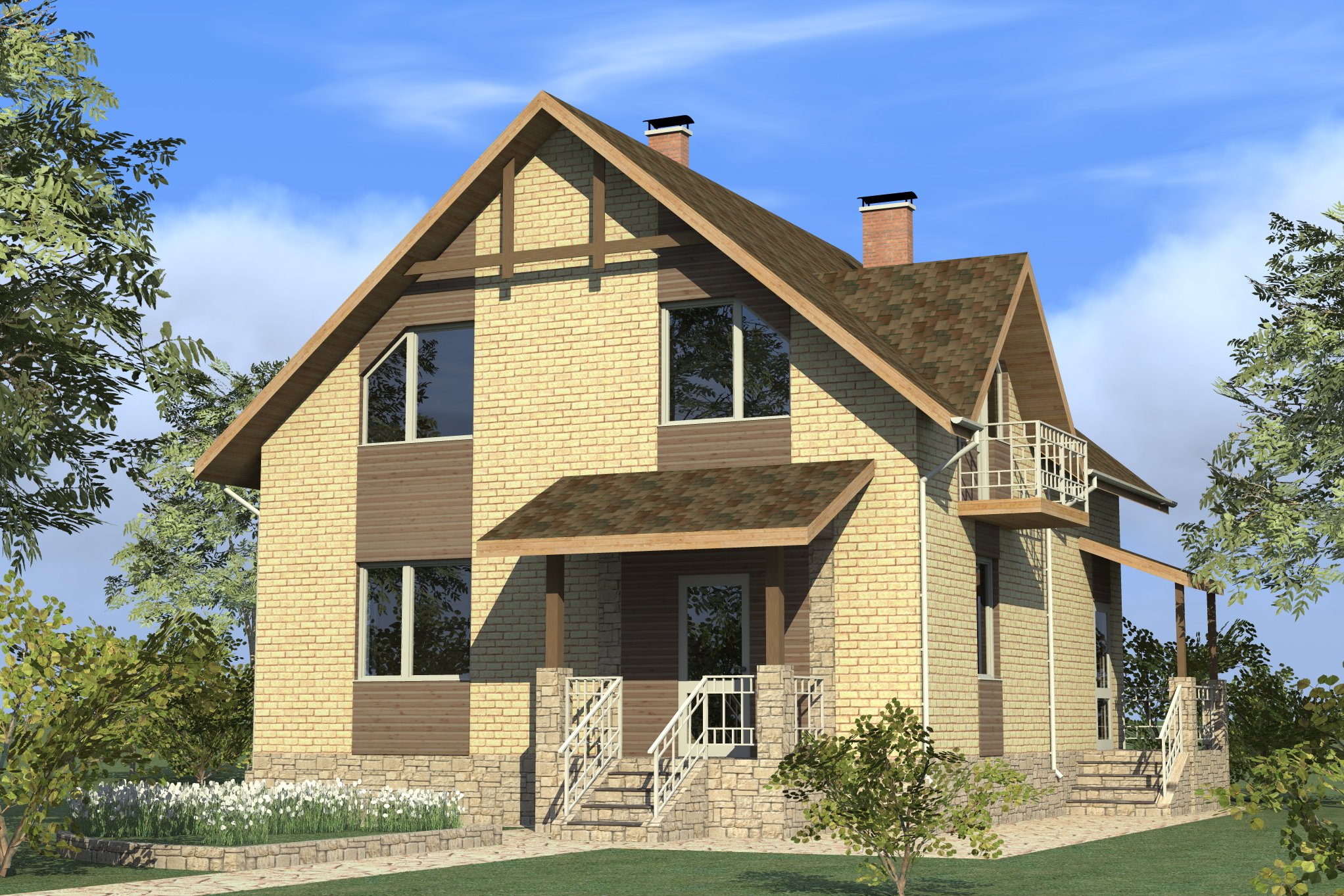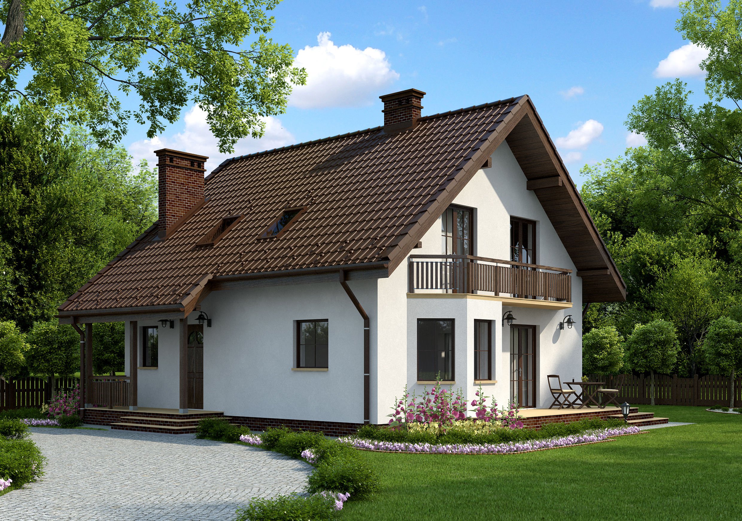 Дом с мансардой и балконом