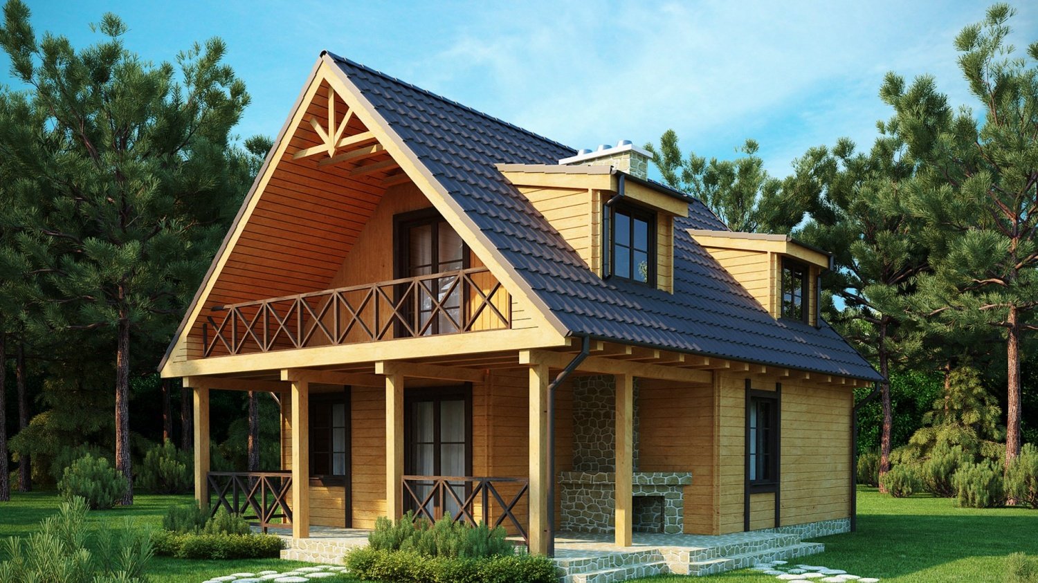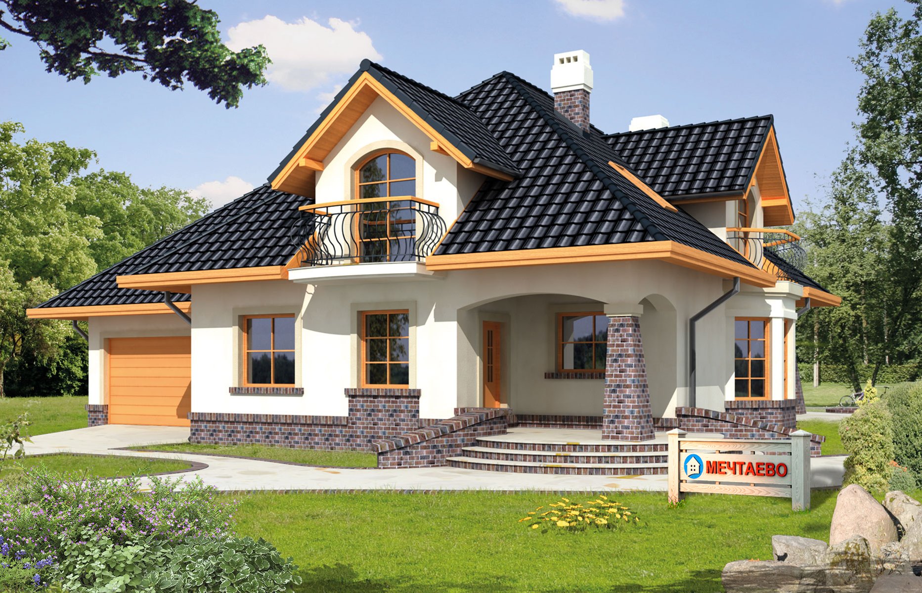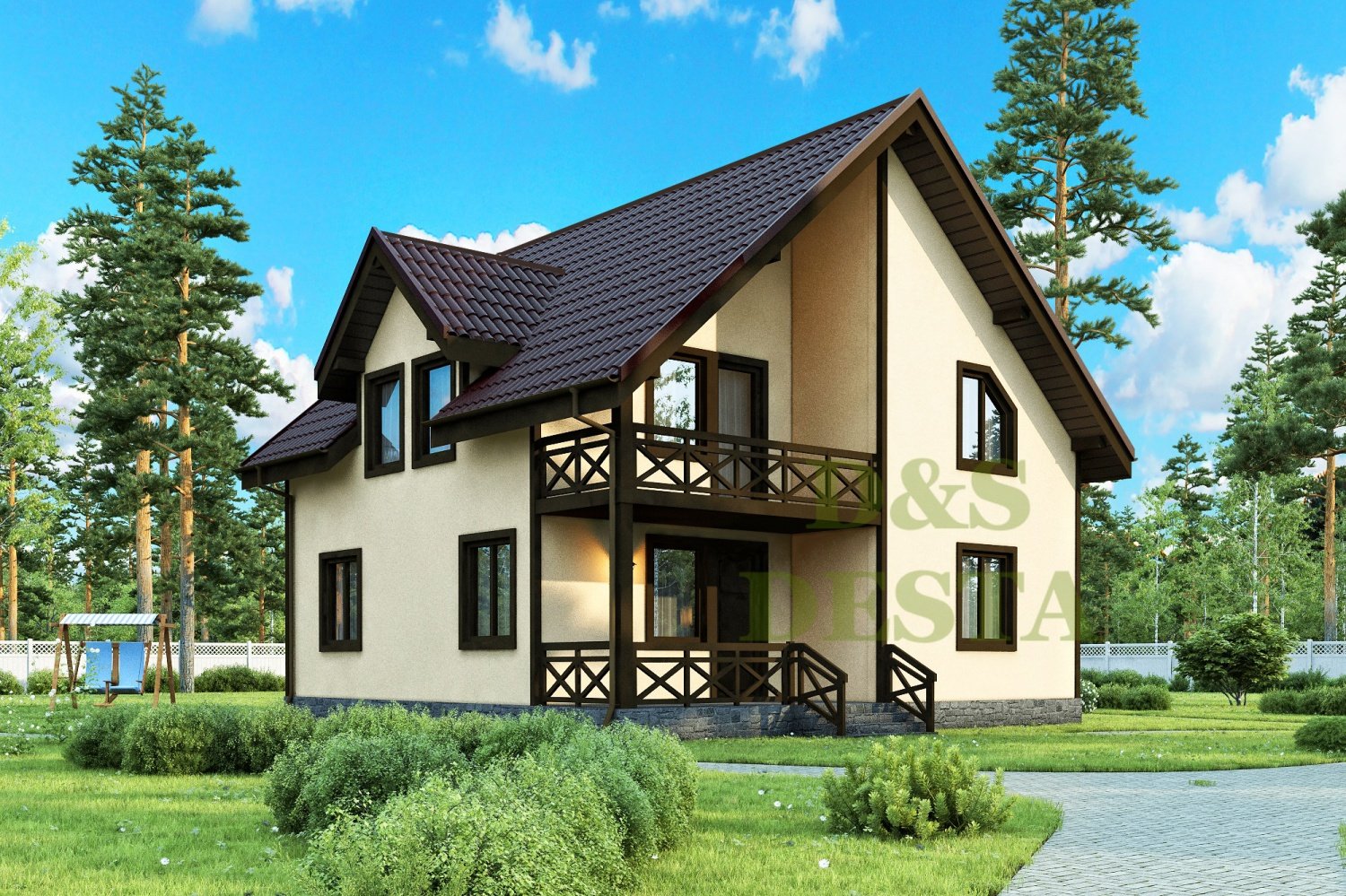Дом с мансардой и балконом