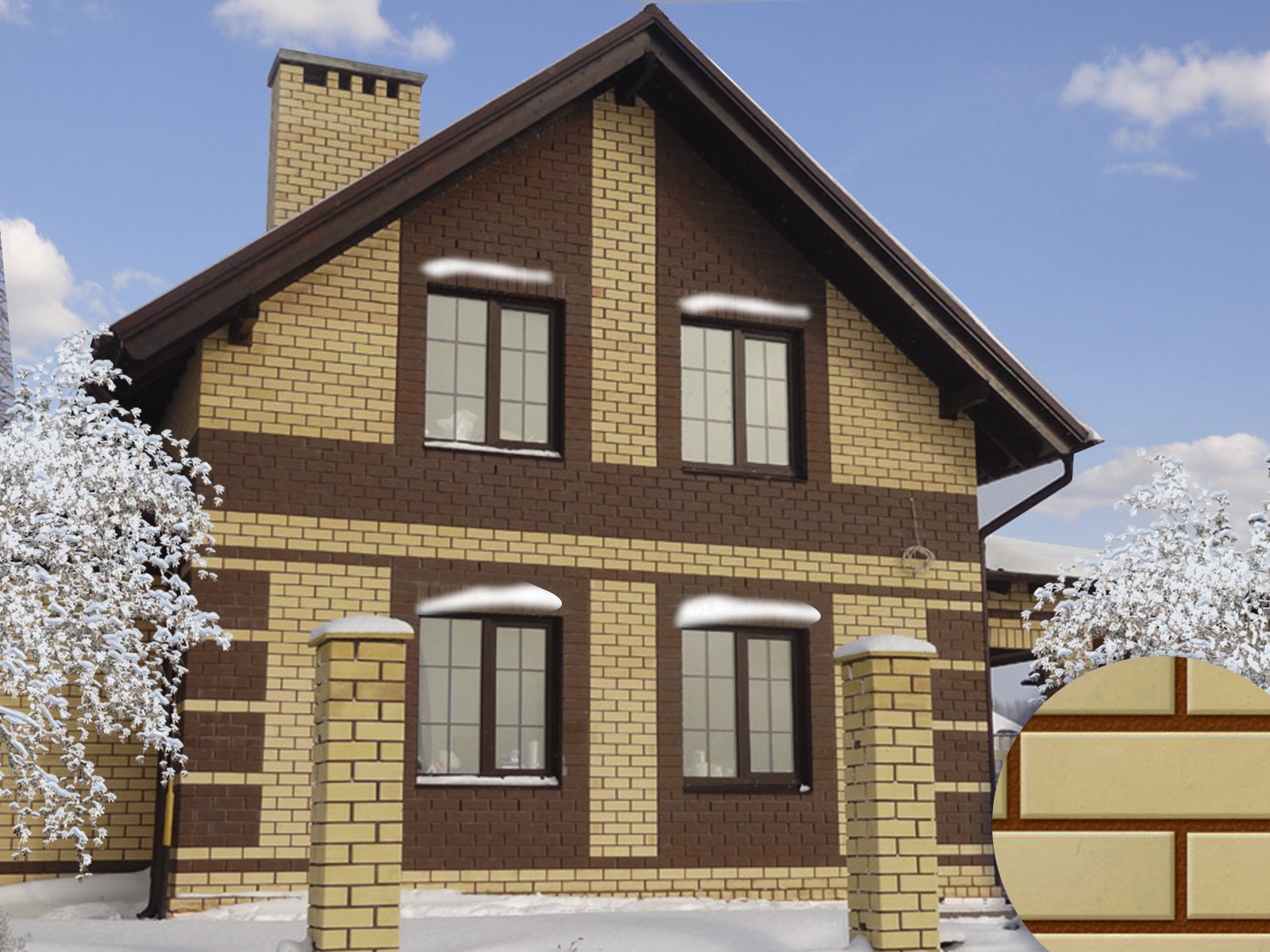 Дом из кирпича двух цветов