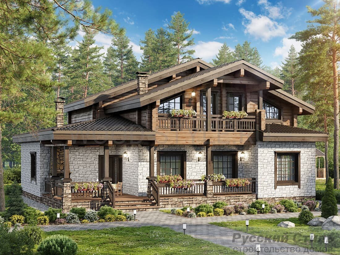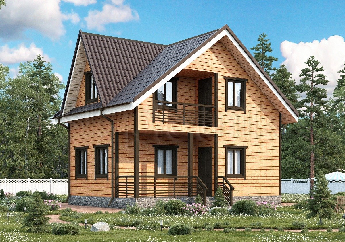 Деревянный двухэтажный дом с мансардой