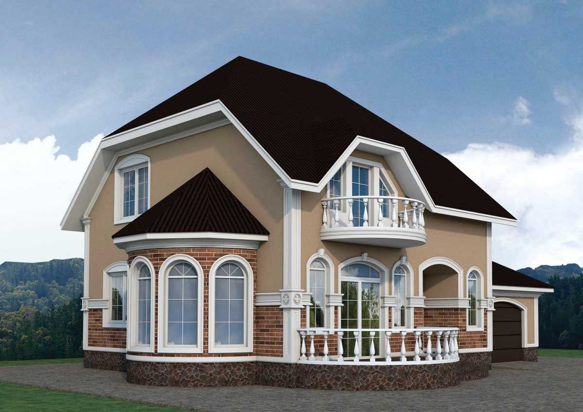 Красивый дом с эркером и мансардой