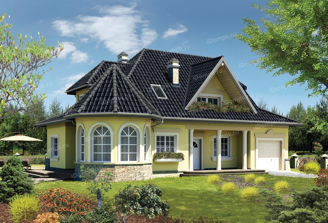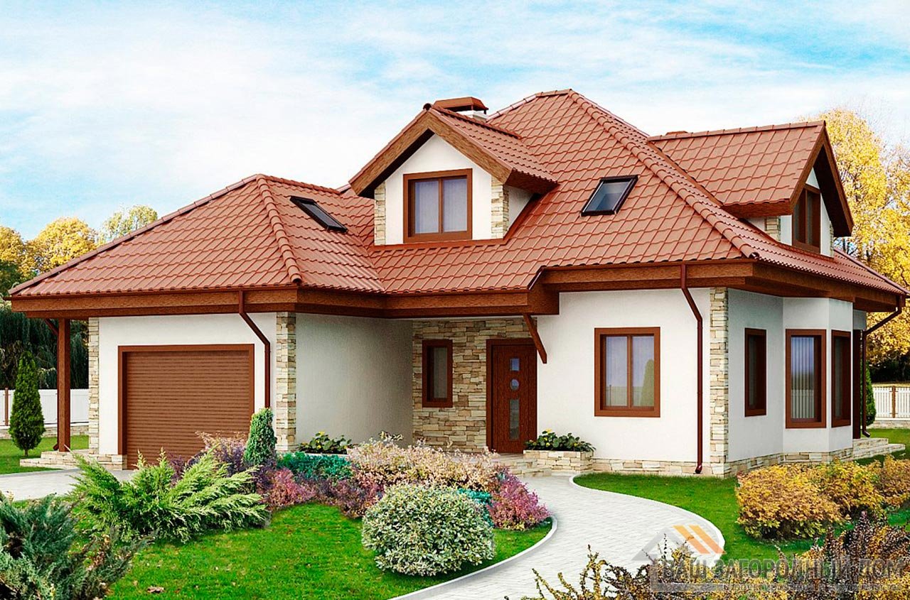 Красивый одноэтажный дом с мансардой