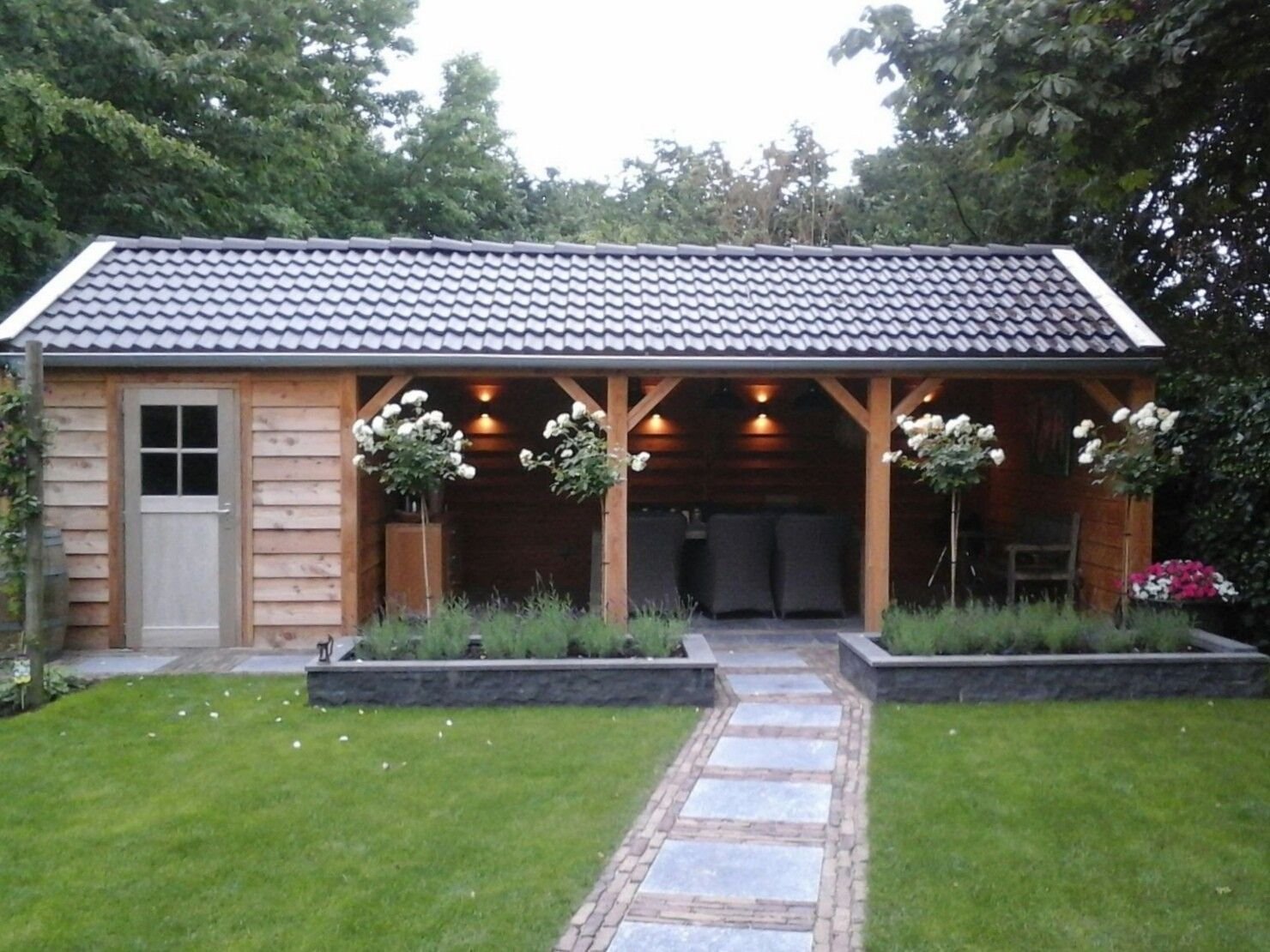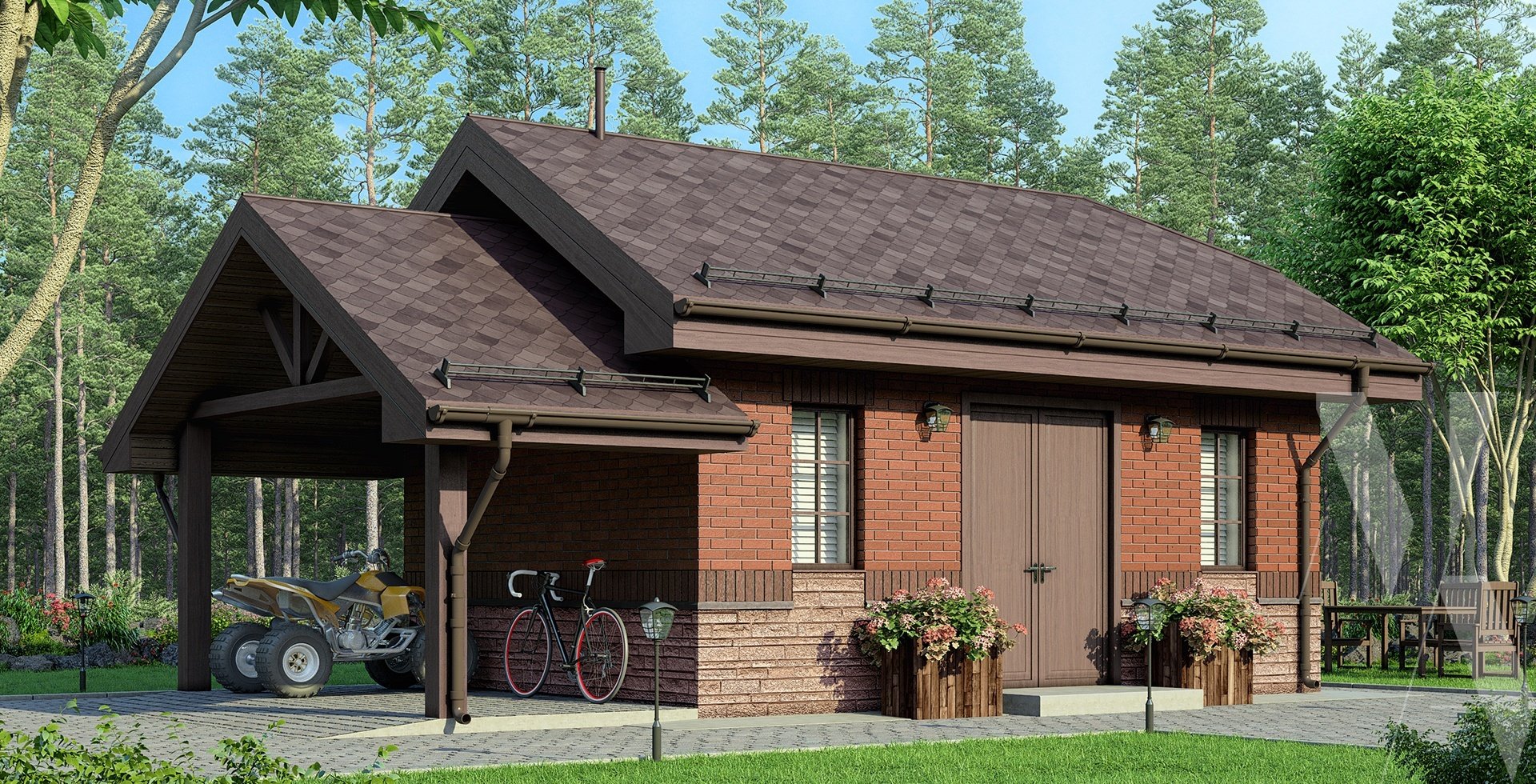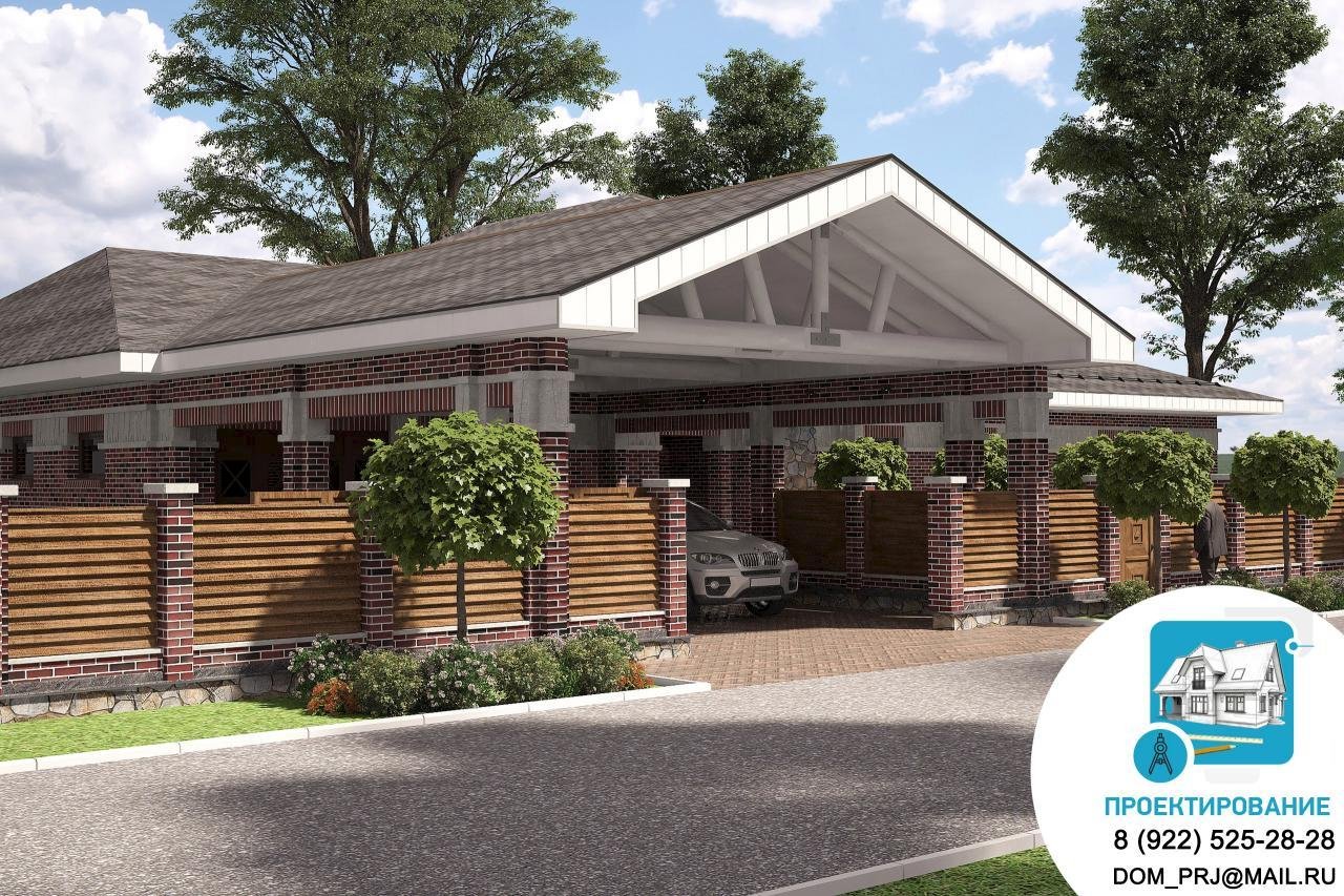 Гараж с беседкой под одной крышей