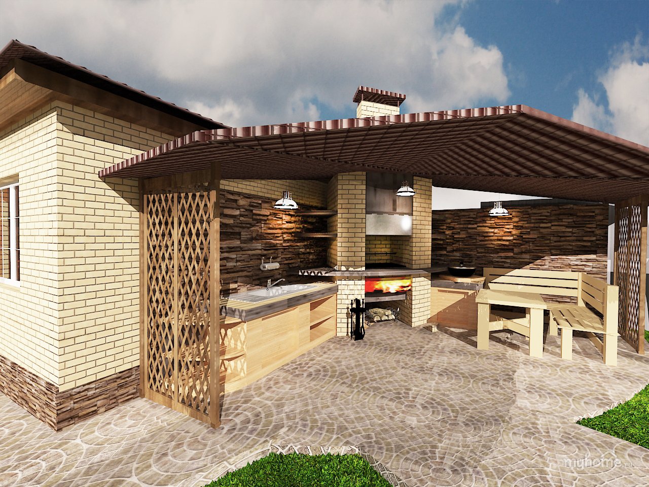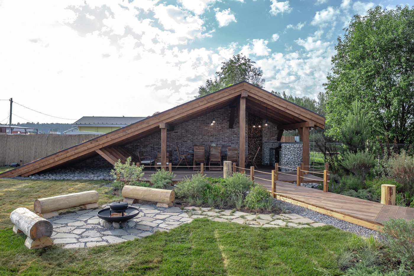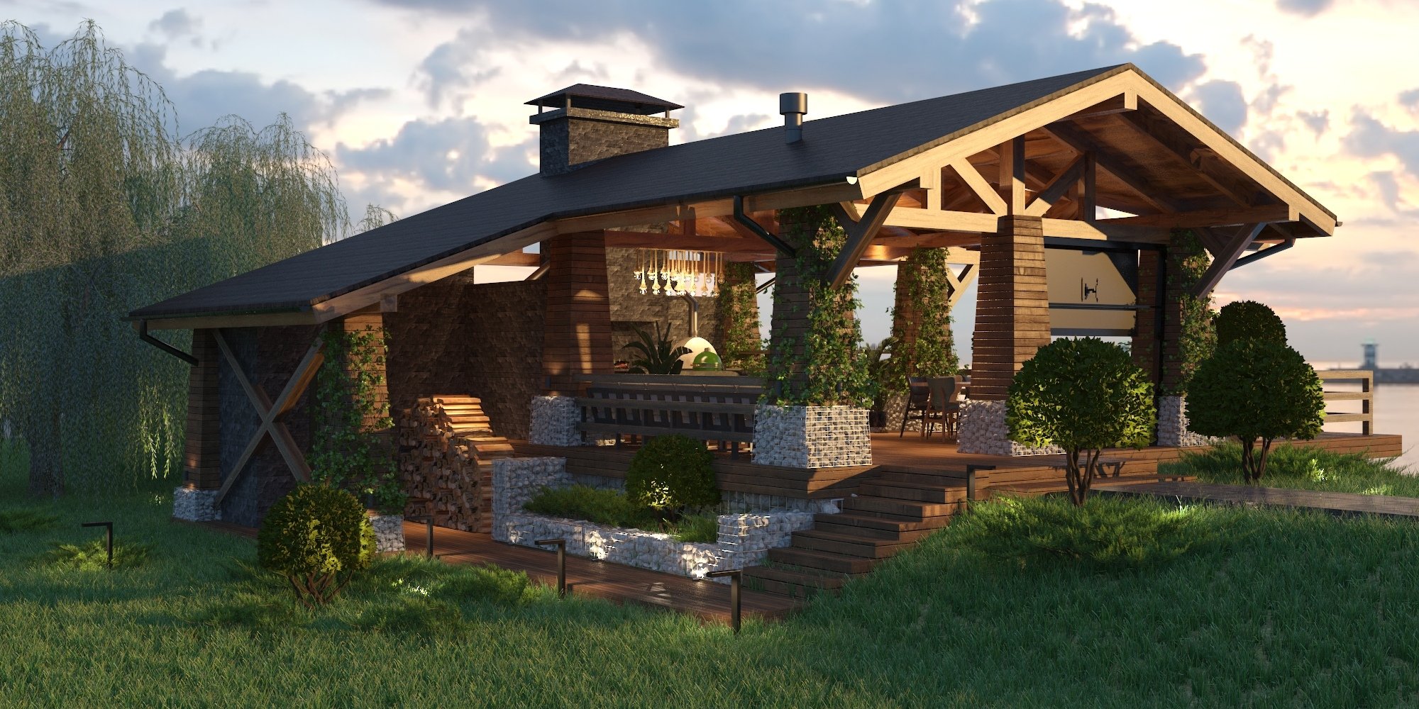 Беседка с мангалом и дровником