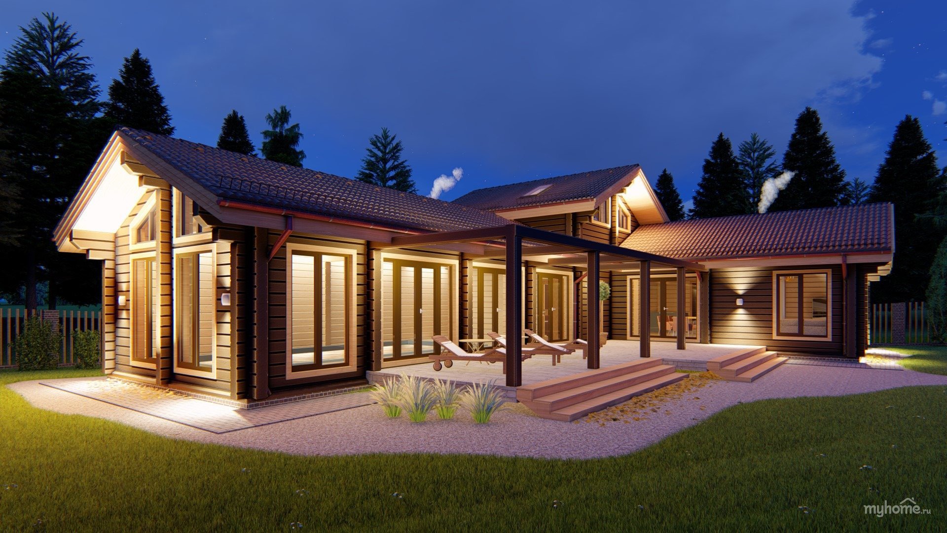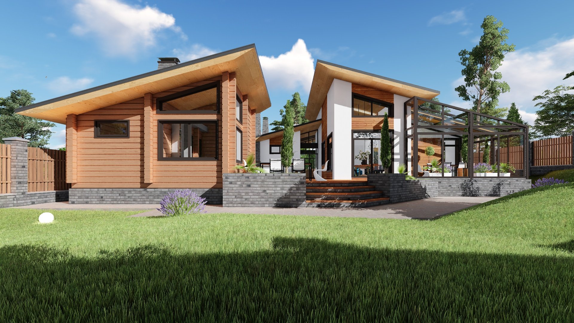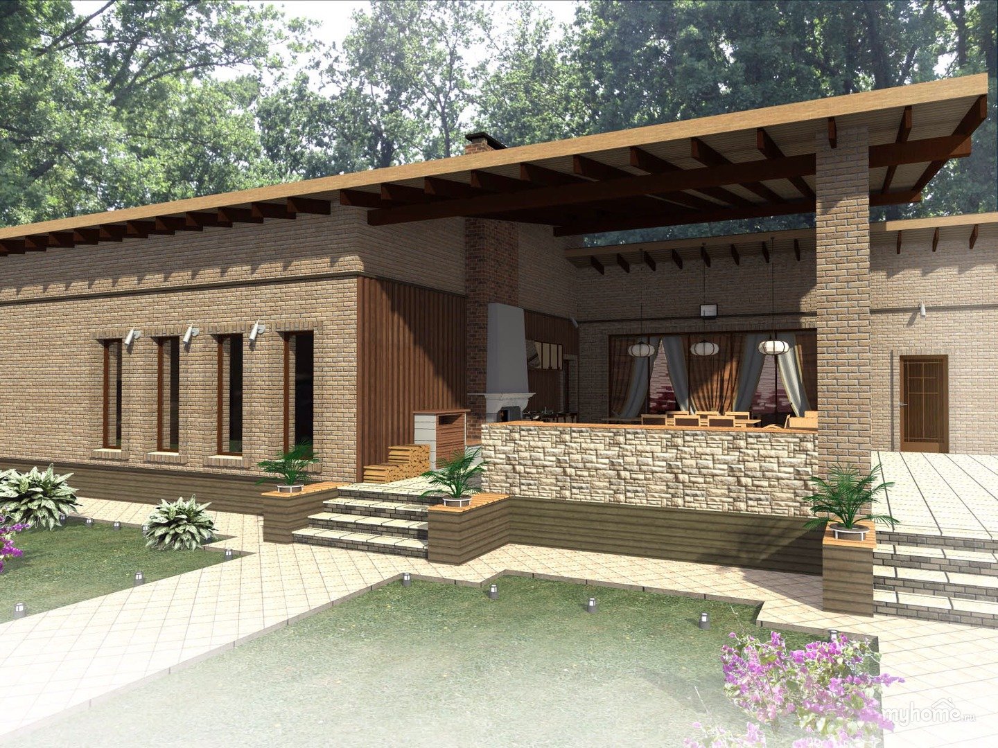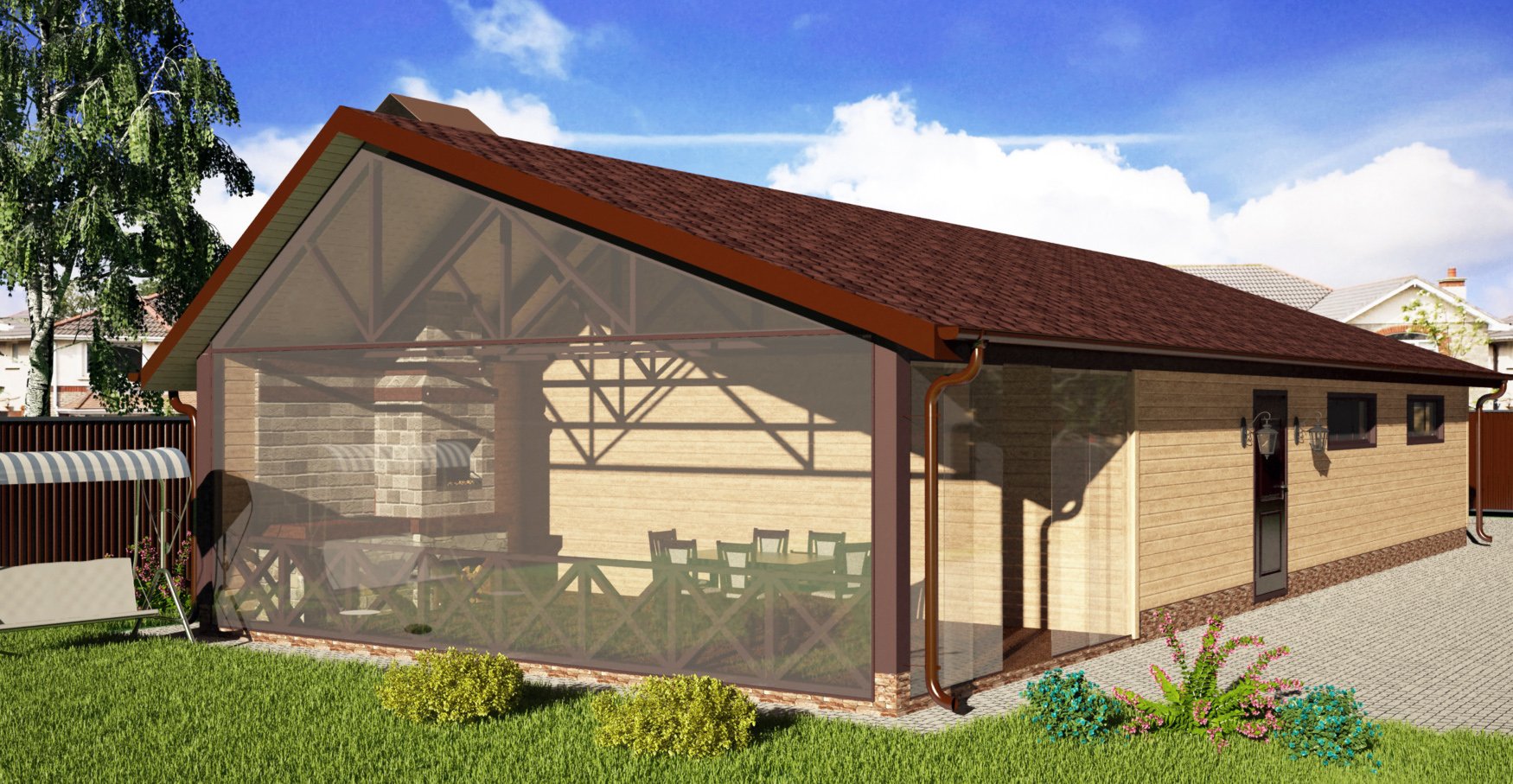 Одноэтажный дом с беседкой